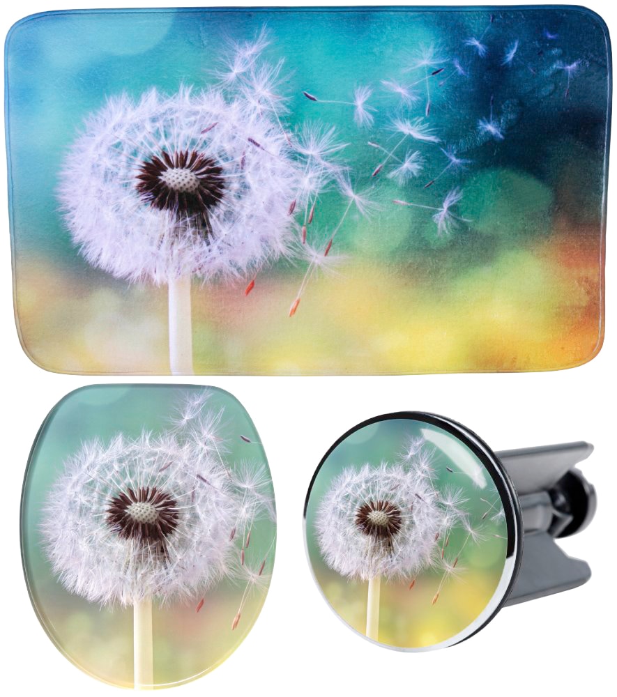 - Badaccessoire-Set »Pusteblume« bestehend aus WC-Sitz, Badteppich und WaschbeckenstöpselSaniloUrsprünglicher PreisUVP 99,99 €Rabatt- 10 %Aktueller Preis89,99 €