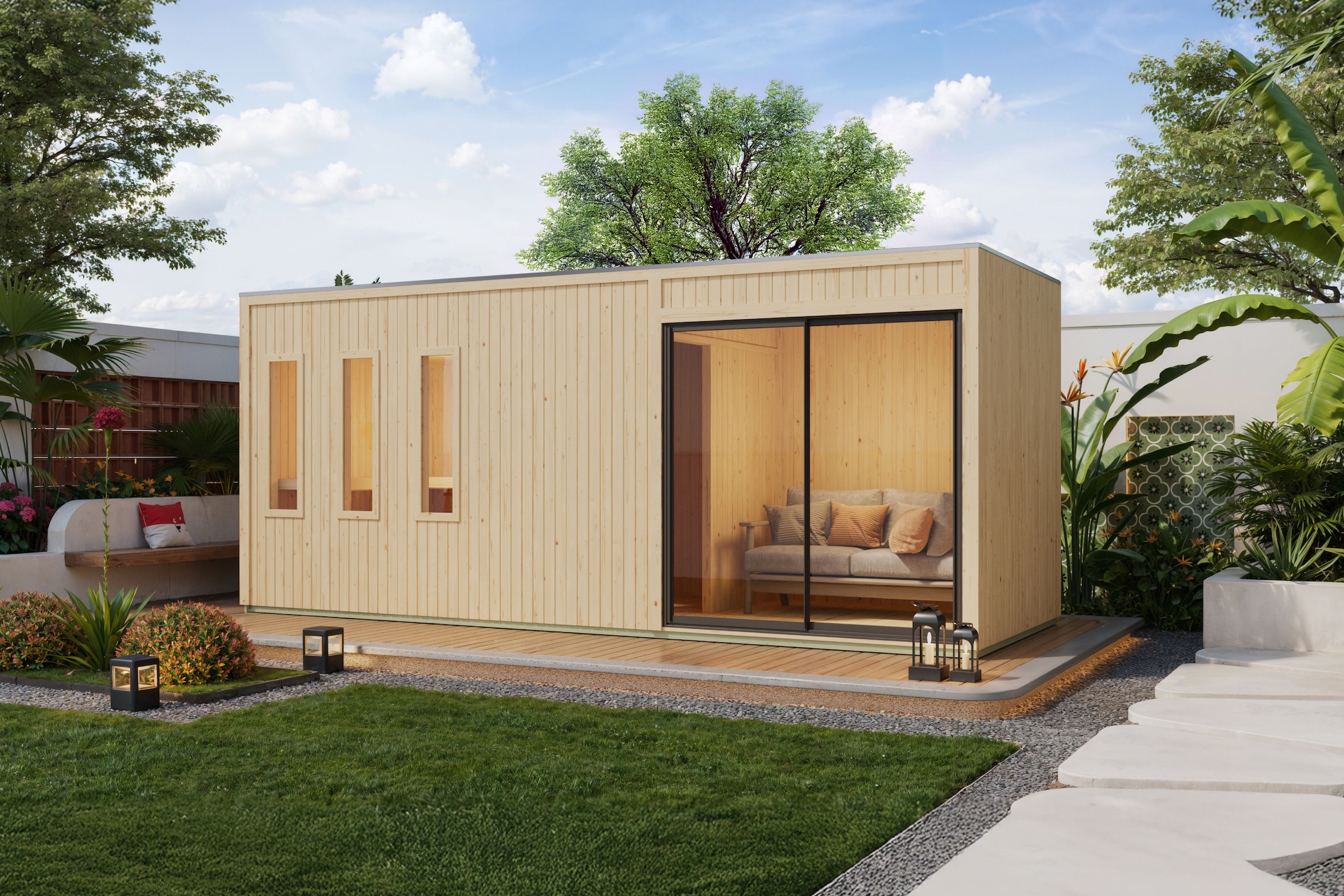 Schauen Sie sich die gemütlichen Saunahäuser bekannter Hersteller an und entdecken Sie ein Modell, das genau Ihren Vorstellungen entspricht.