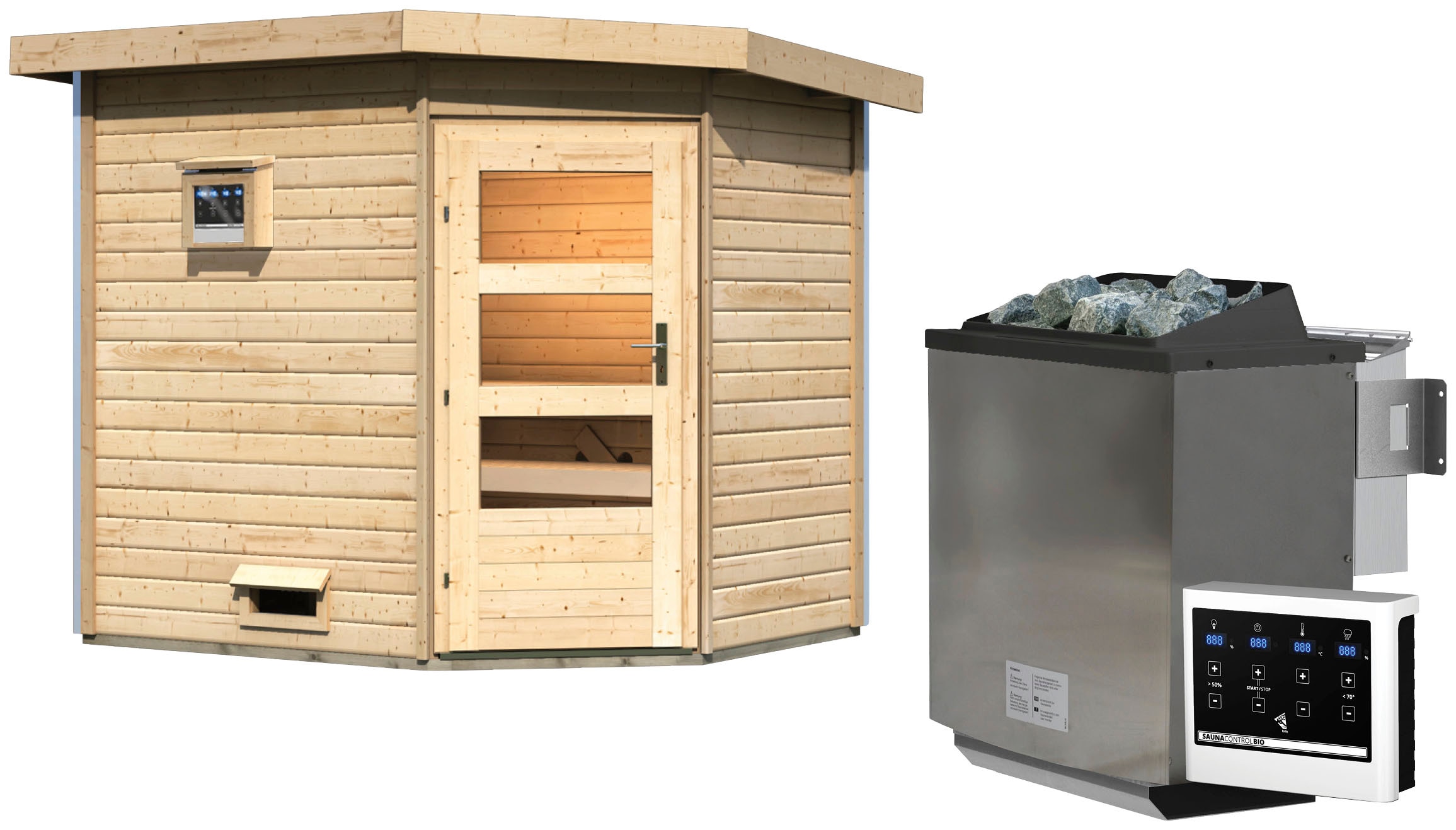 - Saunahaus »Maiko 2B« Set, Ofen 9 kW Bio externe Strg easyKaribuAktueller Preis6.856,99 €