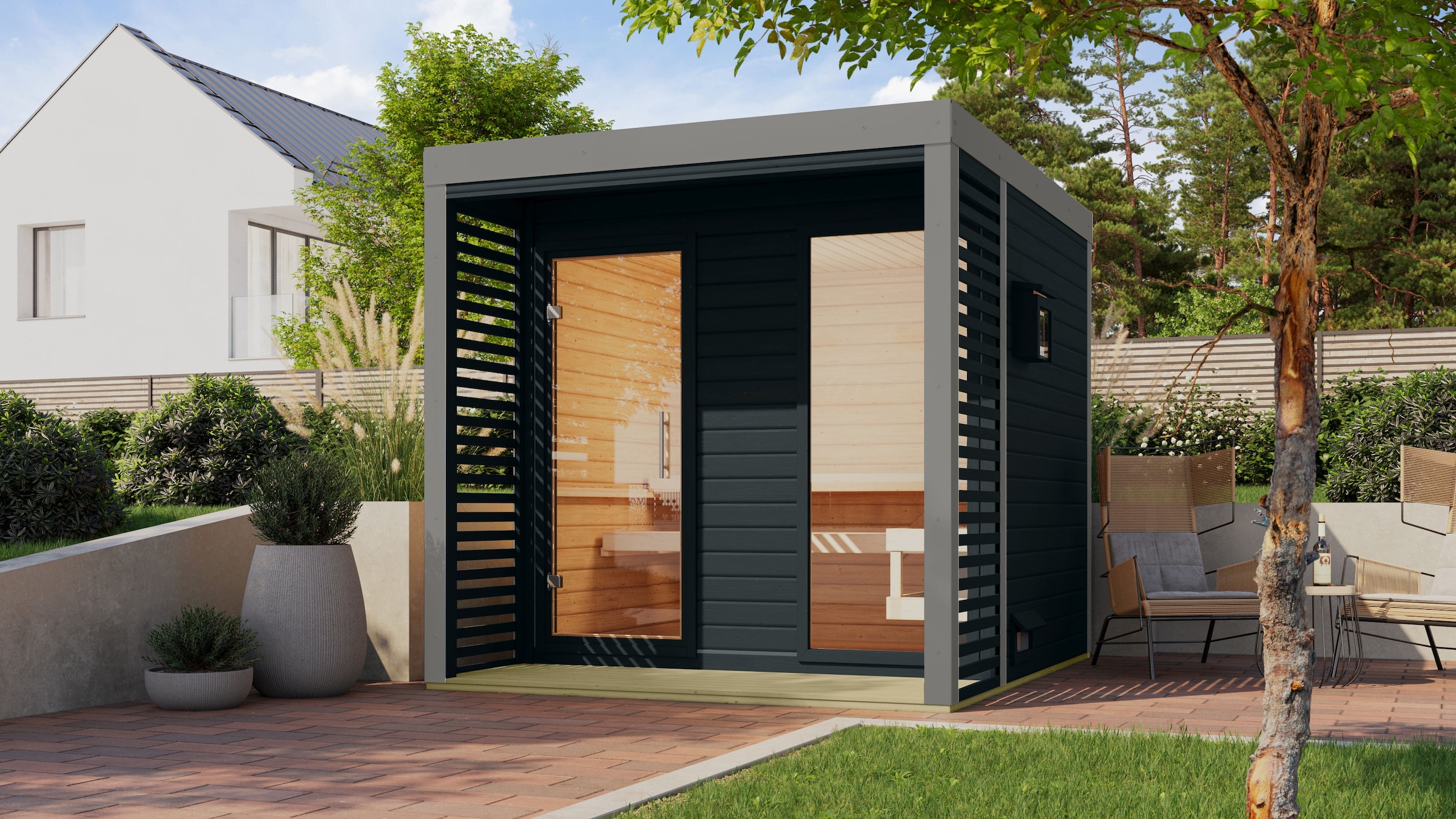 - Saunahaus »"Adrian 3" anthrazit-graualuminium« Wände aus nordischer Fichte, Stahlecken...KaribuAktueller Preisab 5.294,99 €