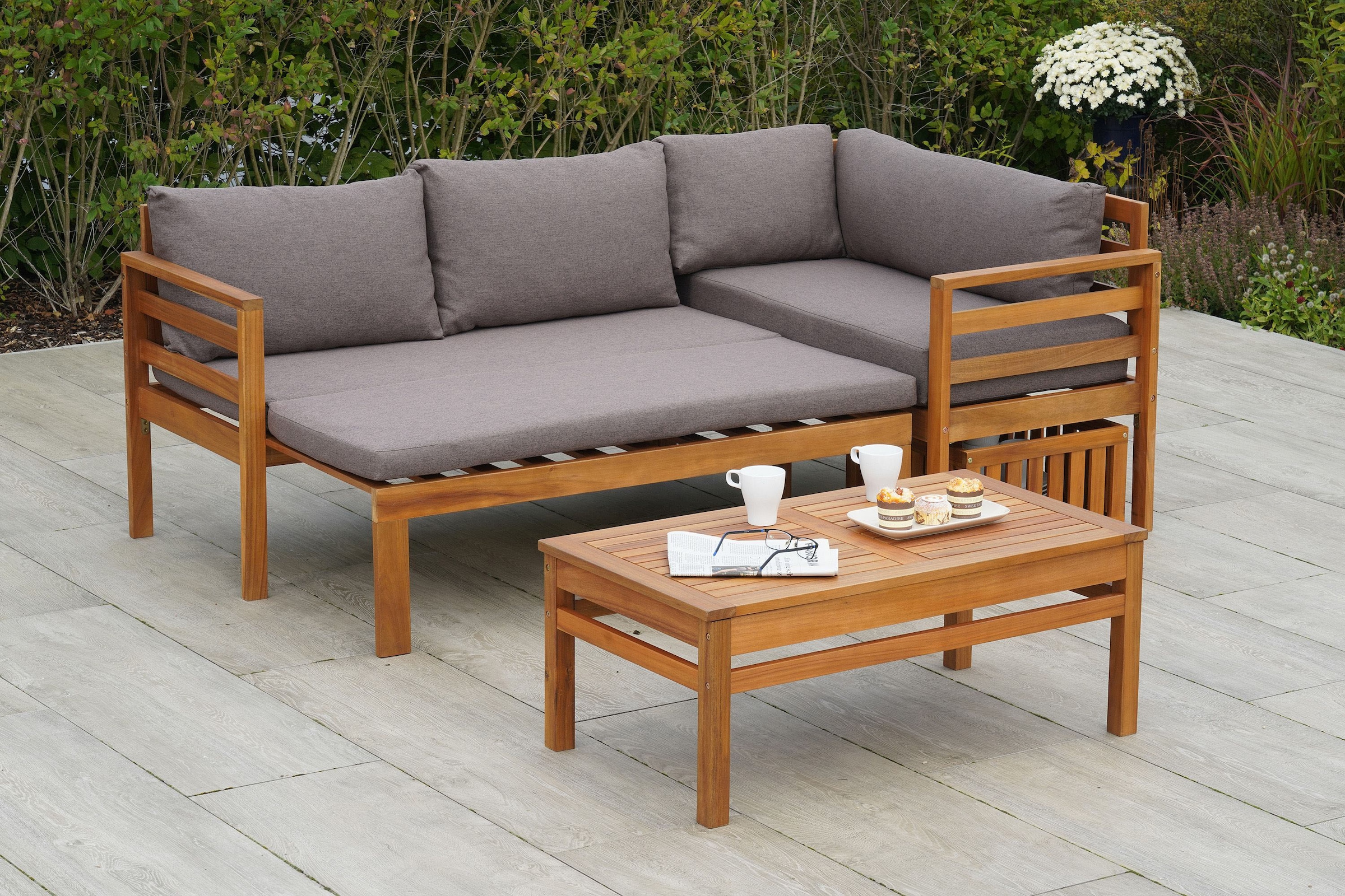 - Garten-Essgruppe »Hawaii« 4x Bänke, 2x Tische, 4x Sitzkissen, Akazienholz FSC® 100 %MERXXUrsprünglicher PreisUVP 1.789,90 €Rabatt- 1.074,91 €Aktueller Preis714,99 €