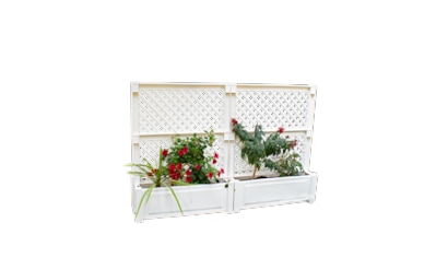 Möchten Sie Ihr Spalier an einem Ort aufstellen, an dem es keinen Erdboden zum Einpflanzen gibt, zum Beispiel am Rand Ihrer Terrasse? Wählen Sie eines mit integriertem großem Blumenkasten. Diese sind auch wunderbar als Balkonsichtschutz für eine Stadtwohnung geeignet.