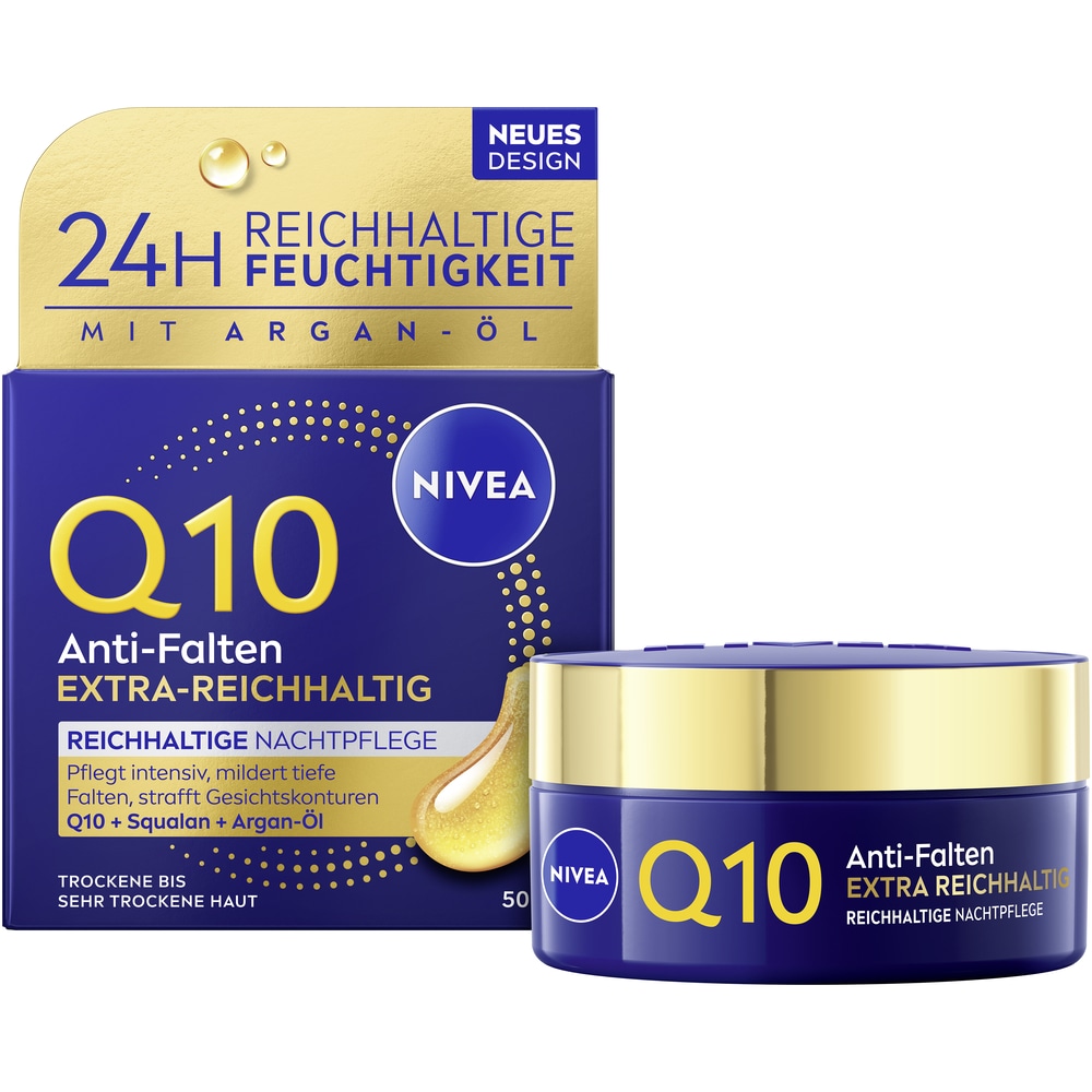 - Nachtcreme »Q10 ANTI-FALTEN EXTRA-REICHHALTIG NACHTPFLEGE« speziell für trockene bis...NiveaAktueller Preis13,99 €Grundpreis279,80 €pro1 l