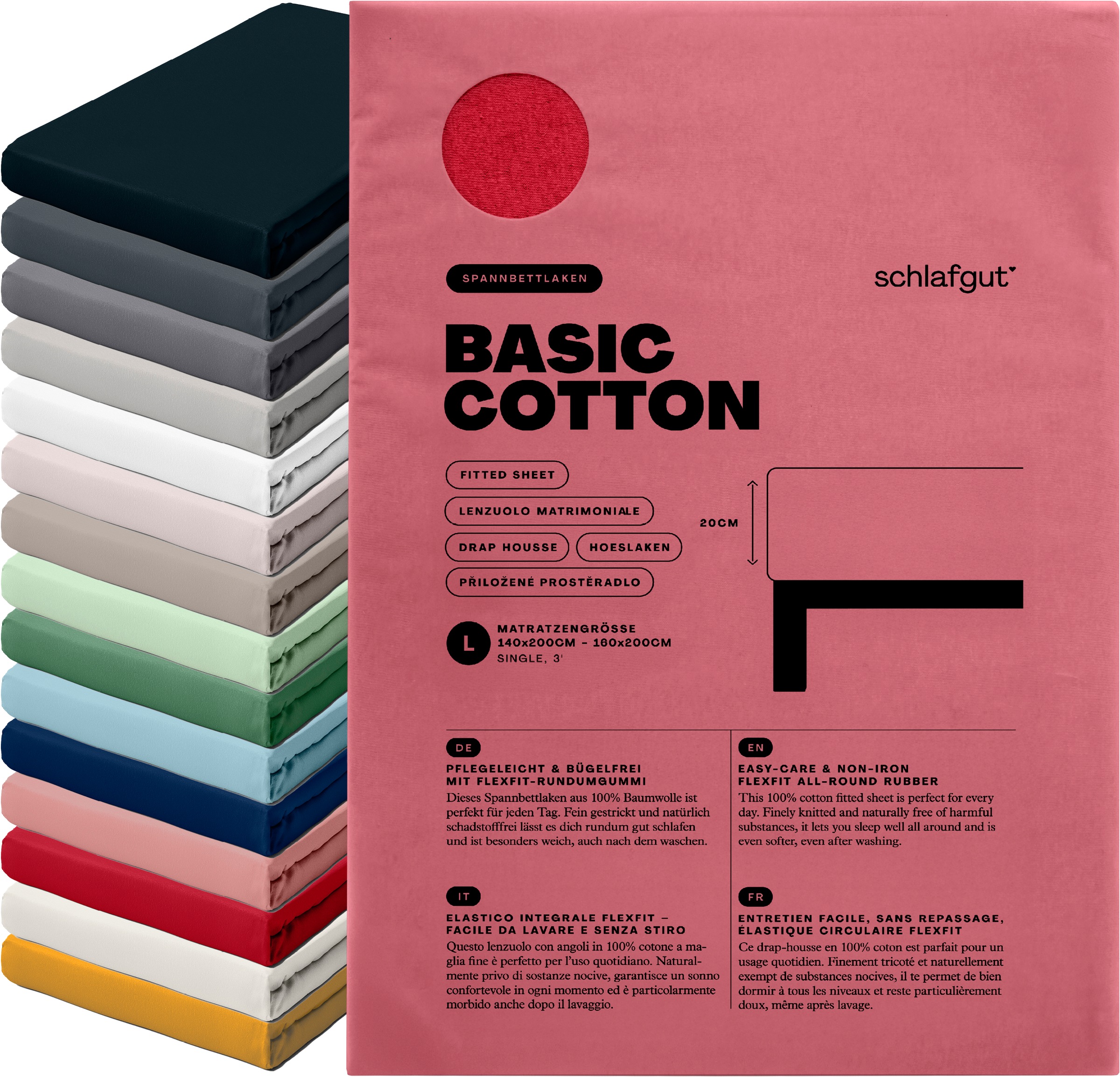 + Farben - Spannbettlaken »Basic Cotton Bettlaken, 160 g/m², 100% Baumwolle, Spannbetttuch«...SchlafgutUrsprünglicher PreisUVP 24,95 €Rabatt- 7 %Aktueller Preisab 22,99 €