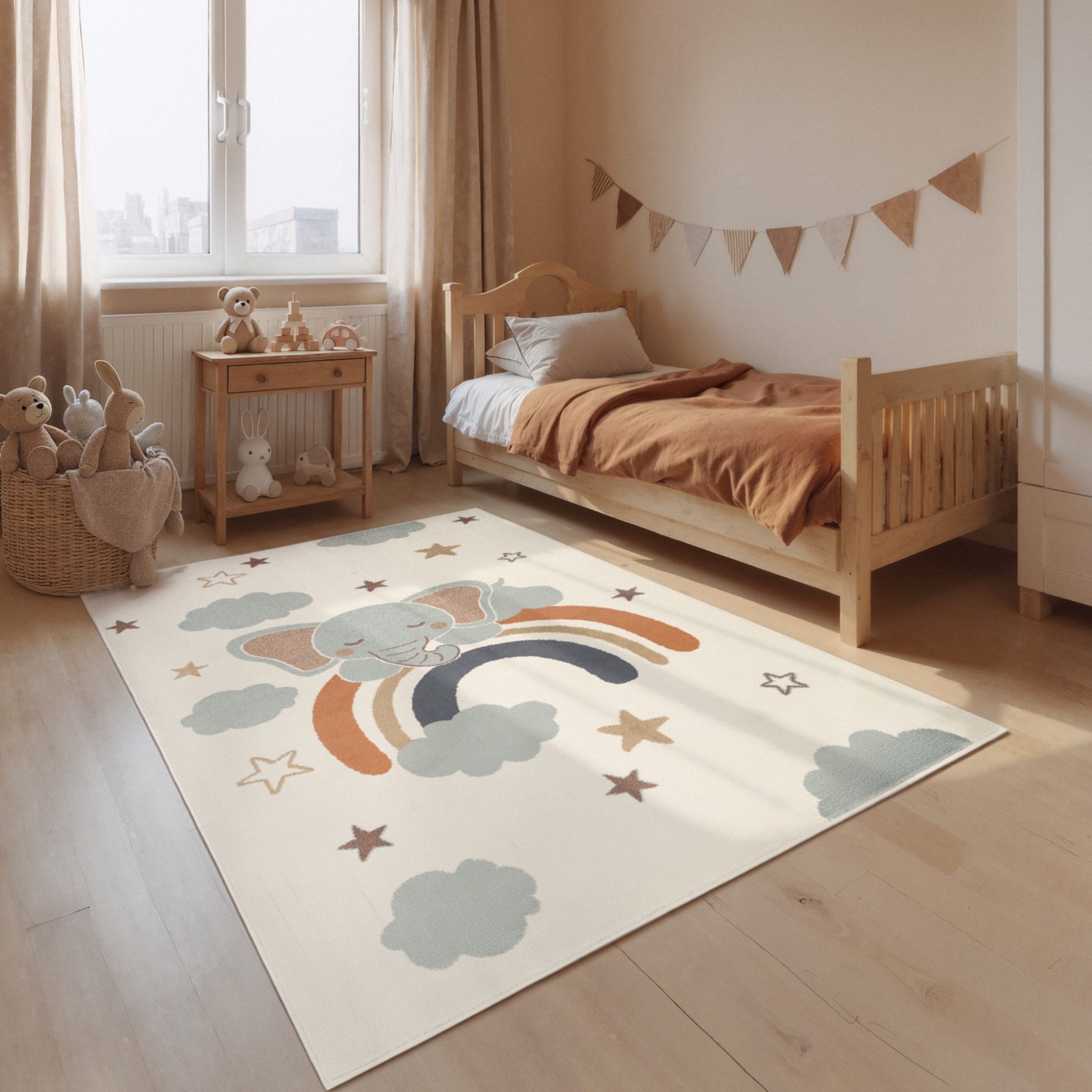 - Kinderteppich »Kids 560« rund 12 mm Höhe auch rechteckig, Elefanten Baby Sterne, KurzflorAyyildiz TeppicheUrsprünglicher PreisUVP 86,40 €Rabatt- 52 %Aktueller Preisab 40,99 €