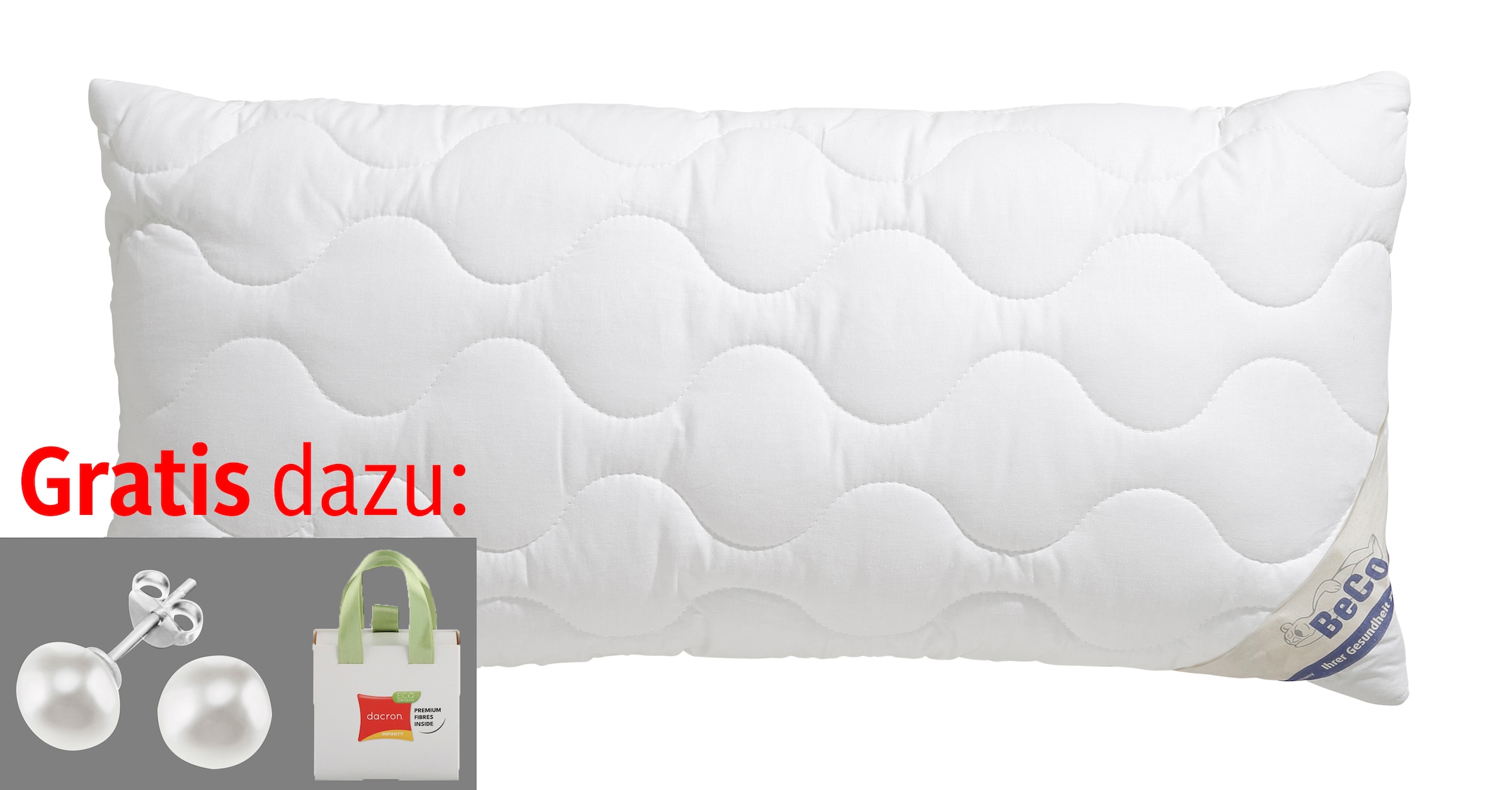 - Kunstfaserkopfkissen »Aerelle Blue Eco "GOLD", Kissen, mit Gratis-Perlenohrsteckern«...BecoUrsprünglicher PreisUVP 49,90 €Rabatt- 47 %Aktueller Preisab 25,99 €