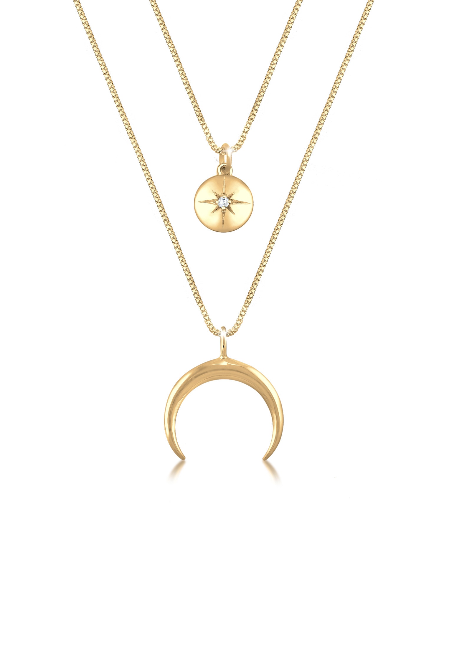 - Silberkette »Halskette Layer Halbmond Stern Plättchen Zirkonia 925 Sterling Silber«ElliAktueller Preis79,99 €