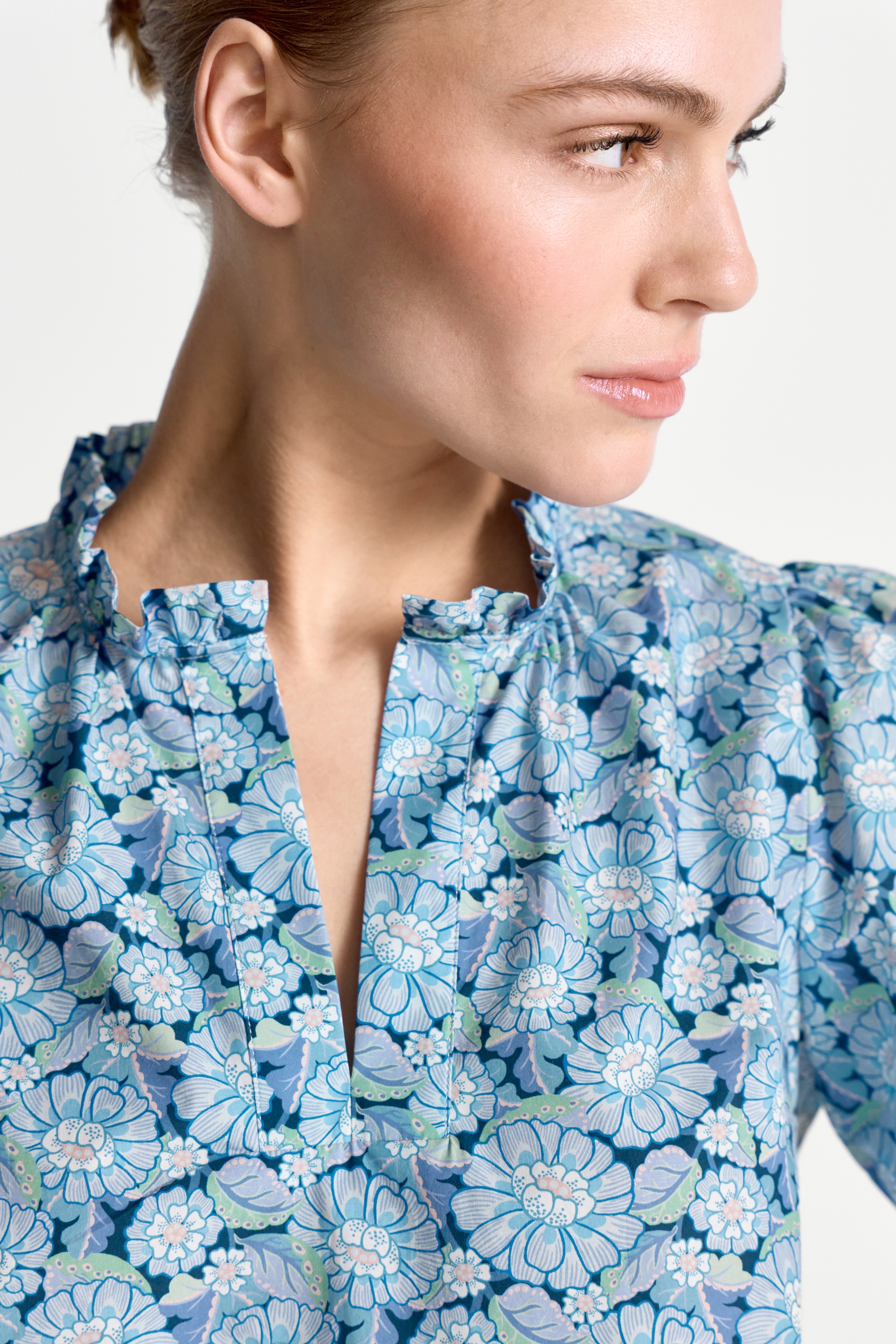 Stimmen Sie die Passform des Blusentops auf Ihren Körpertyp ab, um eine möglichst positive Wirkung zu erzielen. Sind Sie ein V-Typ mit breiten Schultern und üppigem Busen, wählen Sie tiefe V-Ausschnitte, die den Oberkörper strecken und den Blick auf Ihre schmalen Hüften lenken.
