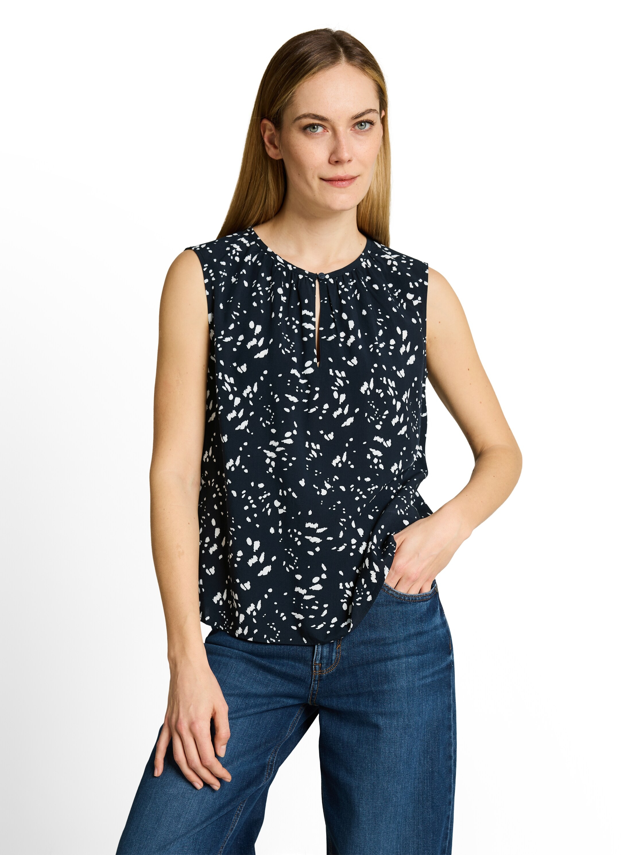 - Blusentop figurnah, ohne Ärmel, aus Jersey- und Crêpe-Qualität, gemustertLaura ScottUrsprünglicher PreisUVP 29,99 €Rabatt- 13 %Aktueller Preisab 25,99 €Grundpreis25,99 €pro1 Stk