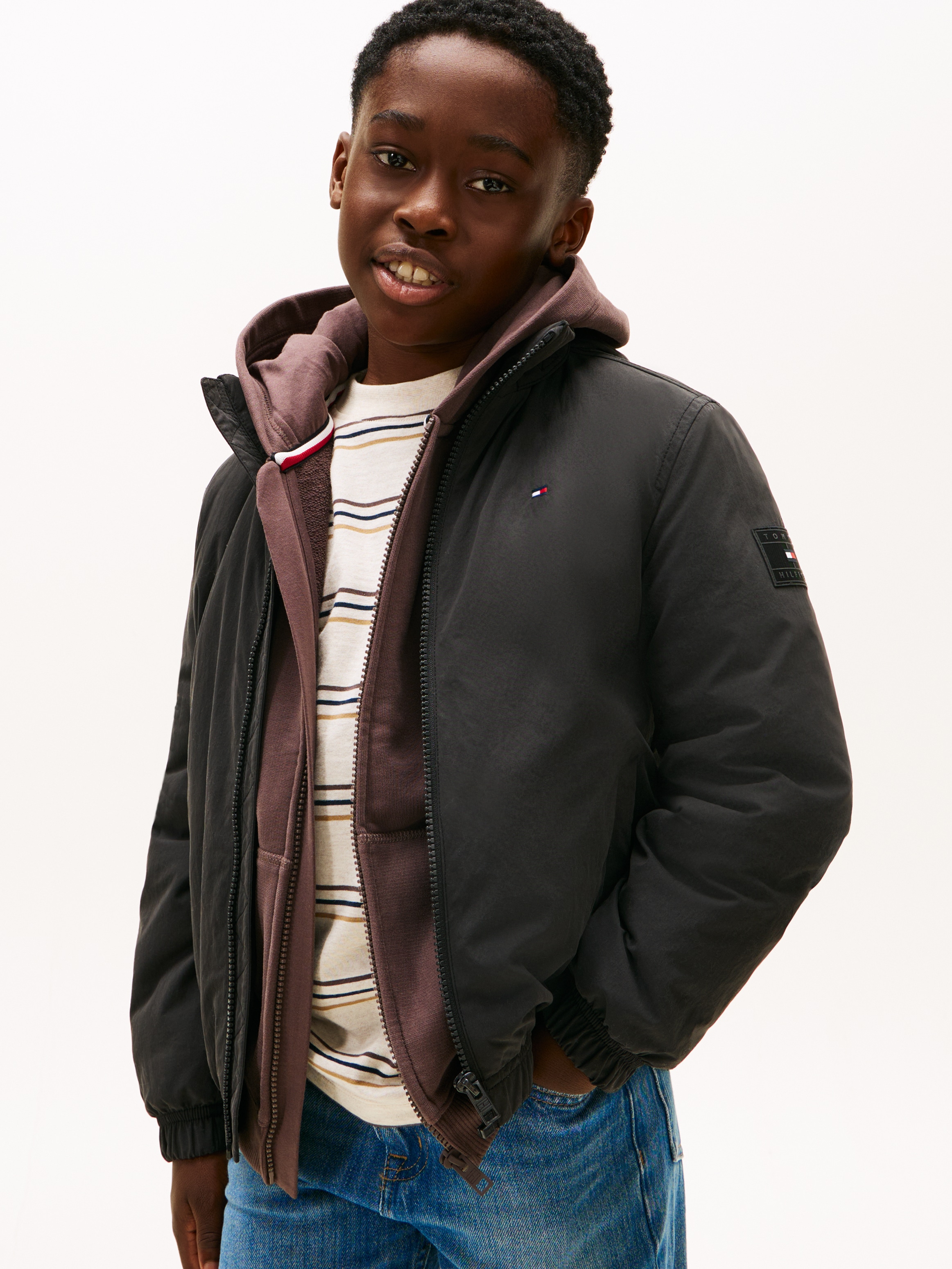 + Farben - Outdoorjacke mit Kapuze Regular fit, für Kinder bis 16 JahreTommy HilfigerUrsprünglicher PreisUVP 114,90 €Rabatt- 21 %Aktueller Preisab 89,99 €
