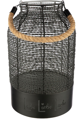 - Windlicht »Windlicht rund Lebe, Liebe, Lache schwarz H. 33 cm«GILDEUrsprünglicher PreisUVP 64,95 €Rabatt- 27 %Aktueller Preis46,99 €
