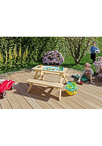 - Kindertisch »Picknicktisch für Kinder aus unbehandeltem Nadelholz« BxTxH: 89x90x51 cm;...KONIFERAUrsprünglicher PreisUVP 91,99 €Rabatt- 22 %Aktueller Preis70,99 €