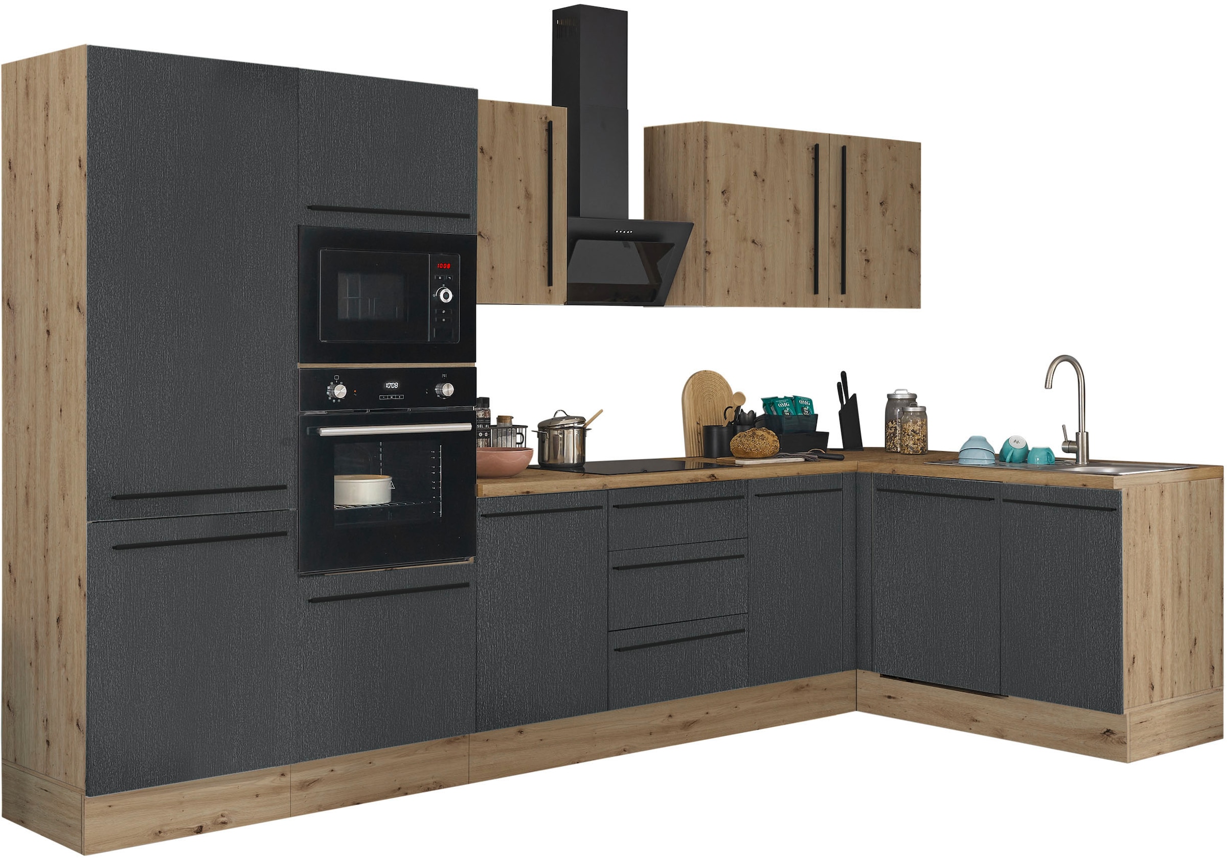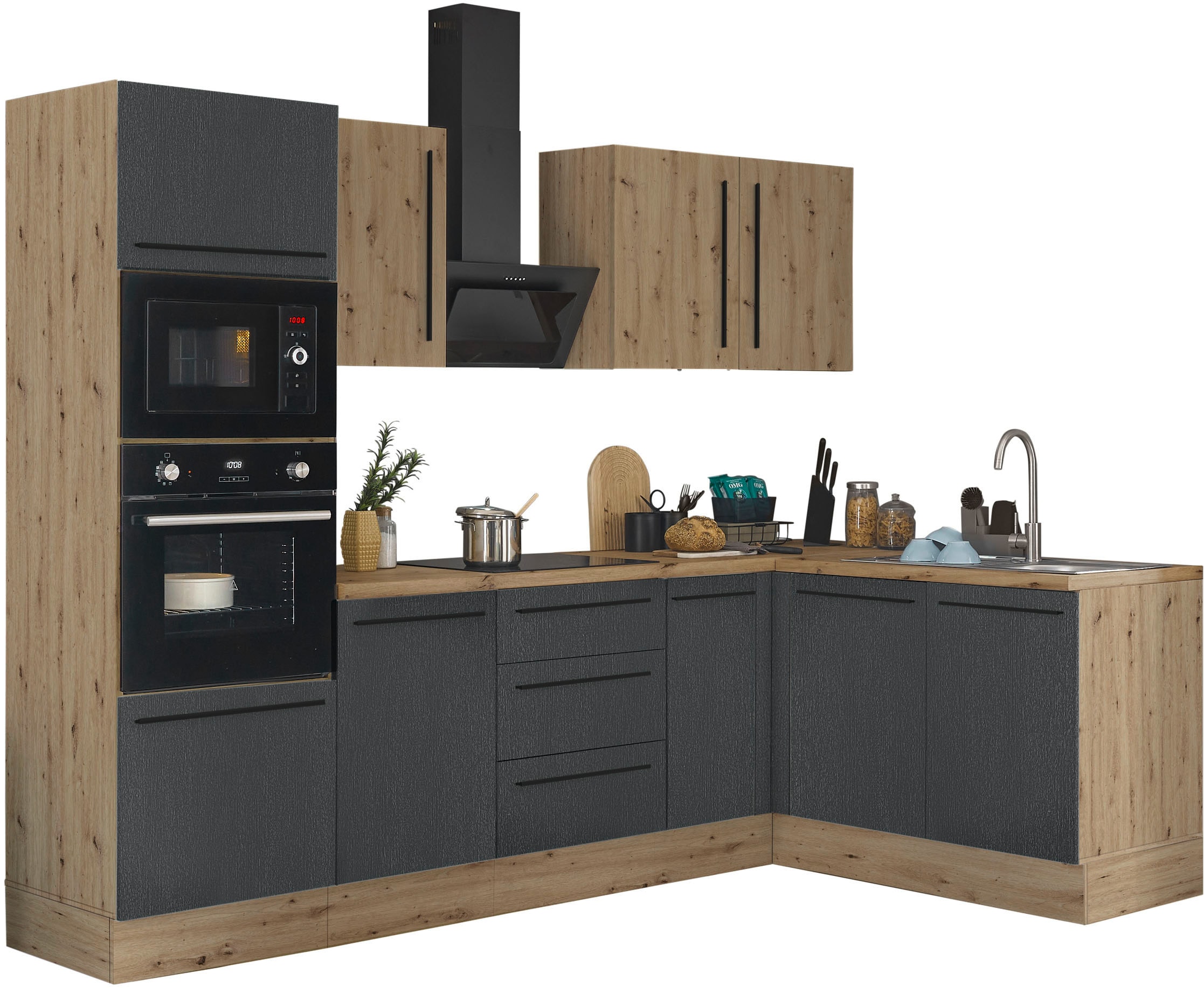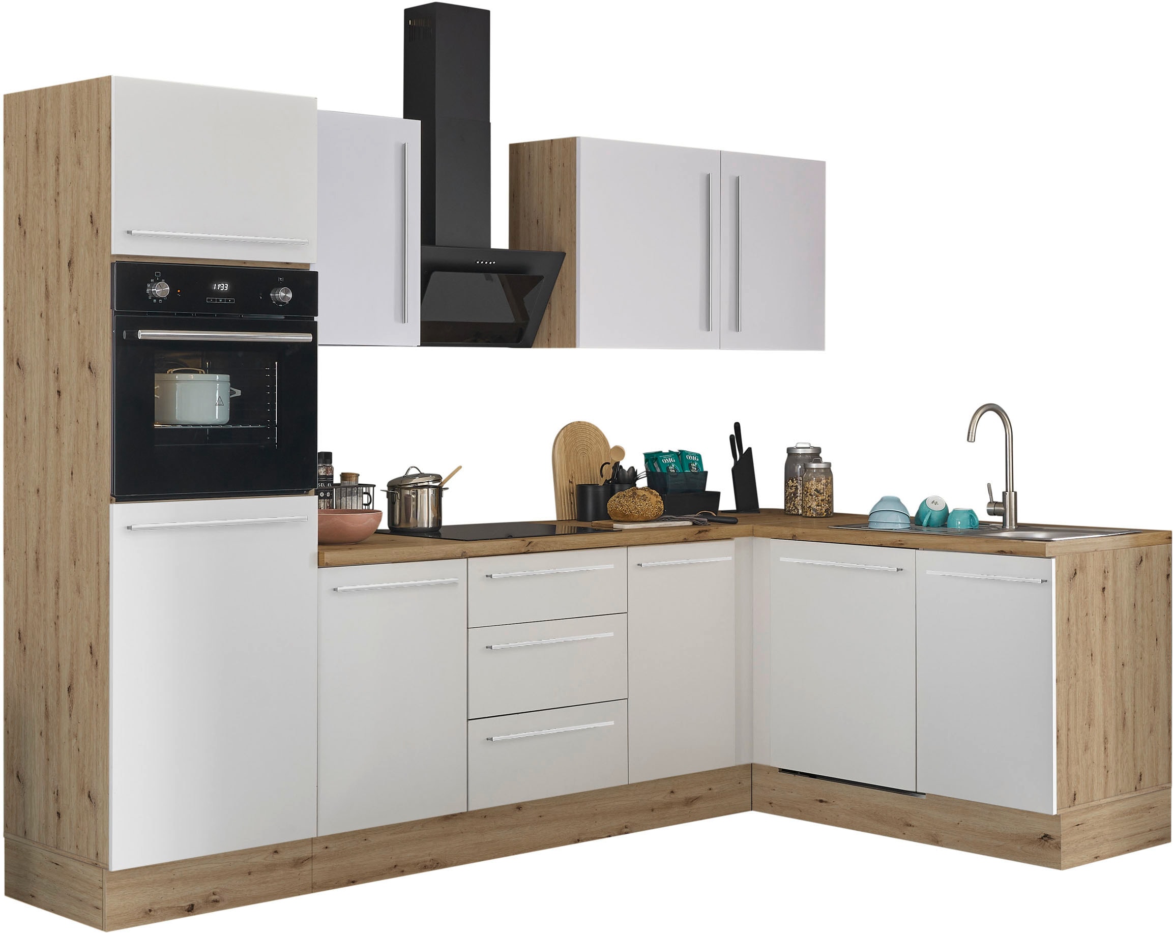 + Farben - Winkelküche »KS-Toronto« Stellbreite 230x170 cm, mit E-GerätenKOCHSTATIONUrsprünglicher PreisUVP 3.459,00 €Rabatt- 975,01 €Aktueller Preis2.483,99 €KühlschrankProduktdatenblattBackofenProduktdatenblattGeschirrspülerProduktdatenblattDunstabzugshaubeProduktdatenblatt