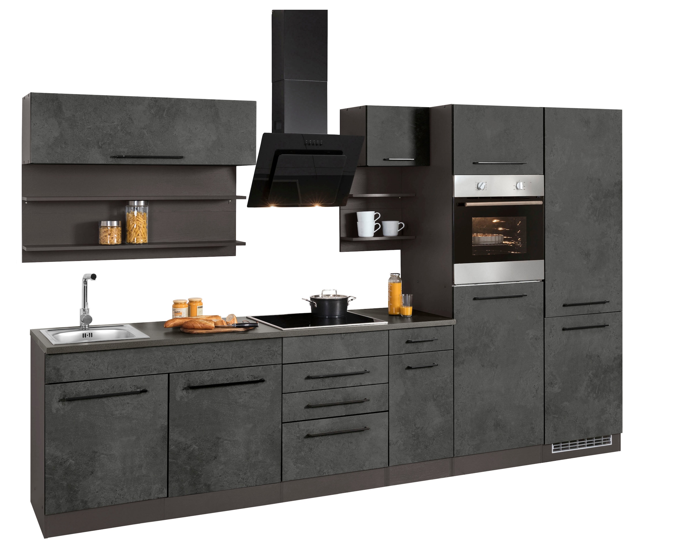 + Farben - Küchenzeile »KS-Tulsa« mit E-Geräten, Breite 330 cm, schwarze Metallgriffe, MDF FrontenKOCHSTATIONUrsprünglicher PreisUVP 5.339,00 €Rabatt- 1.433,01 €Aktueller Preis3.905,99 €