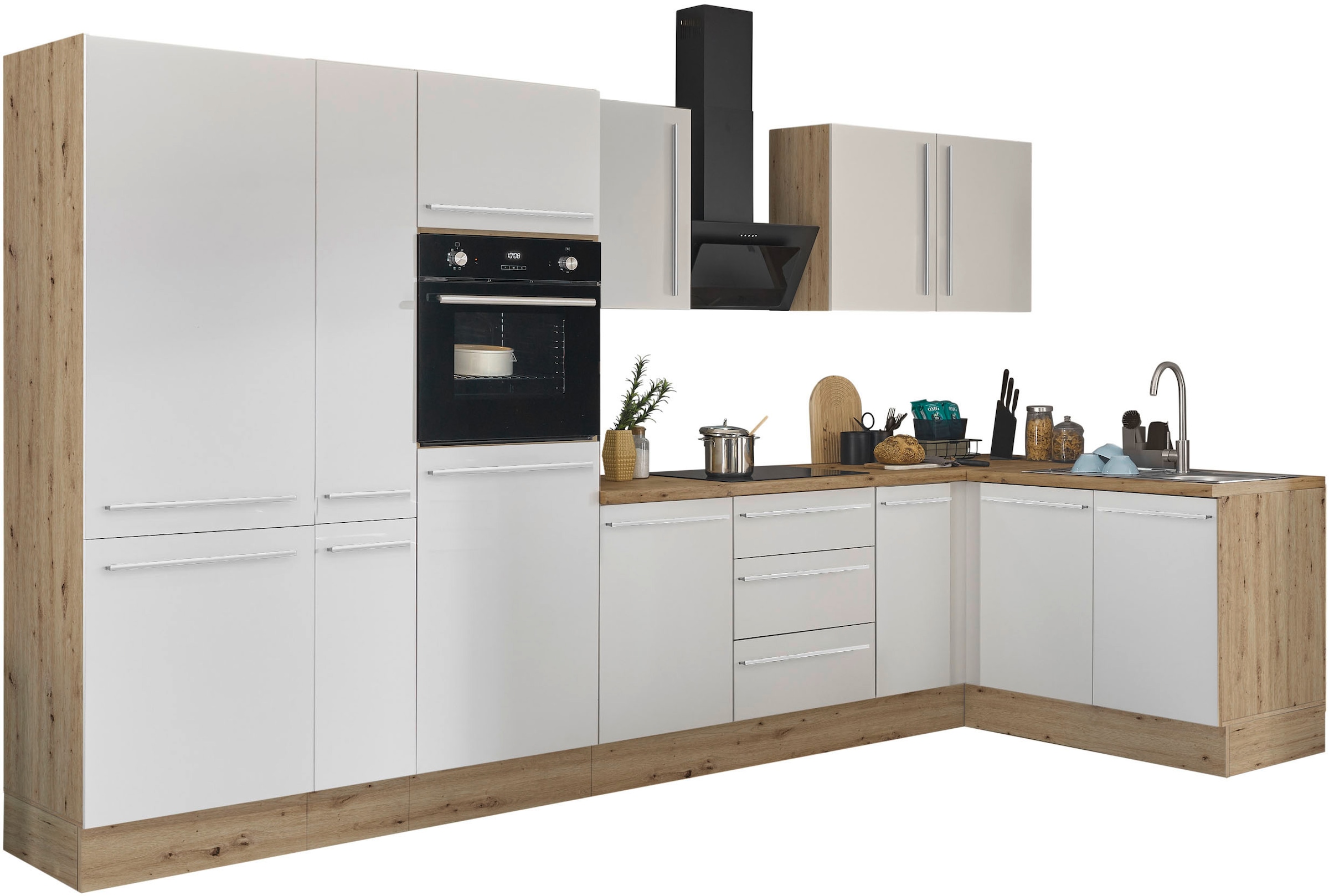 + Farben - Winkelküche »KS-Lagos, Stellbreite 300/240 cm« wahlweise mit E-Geräten, Spüle...KOCHSTATIONUrsprünglicher PreisUVP 3.659,99 €Rabatt- 729,00 €Aktueller Preisab 2.930,99 €BackofenProduktdatenblattGeschirrspülerProduktdatenblattKühl-GefrierkombinationProduktdatenblattDunstabzugshaubeProduktdatenblatt