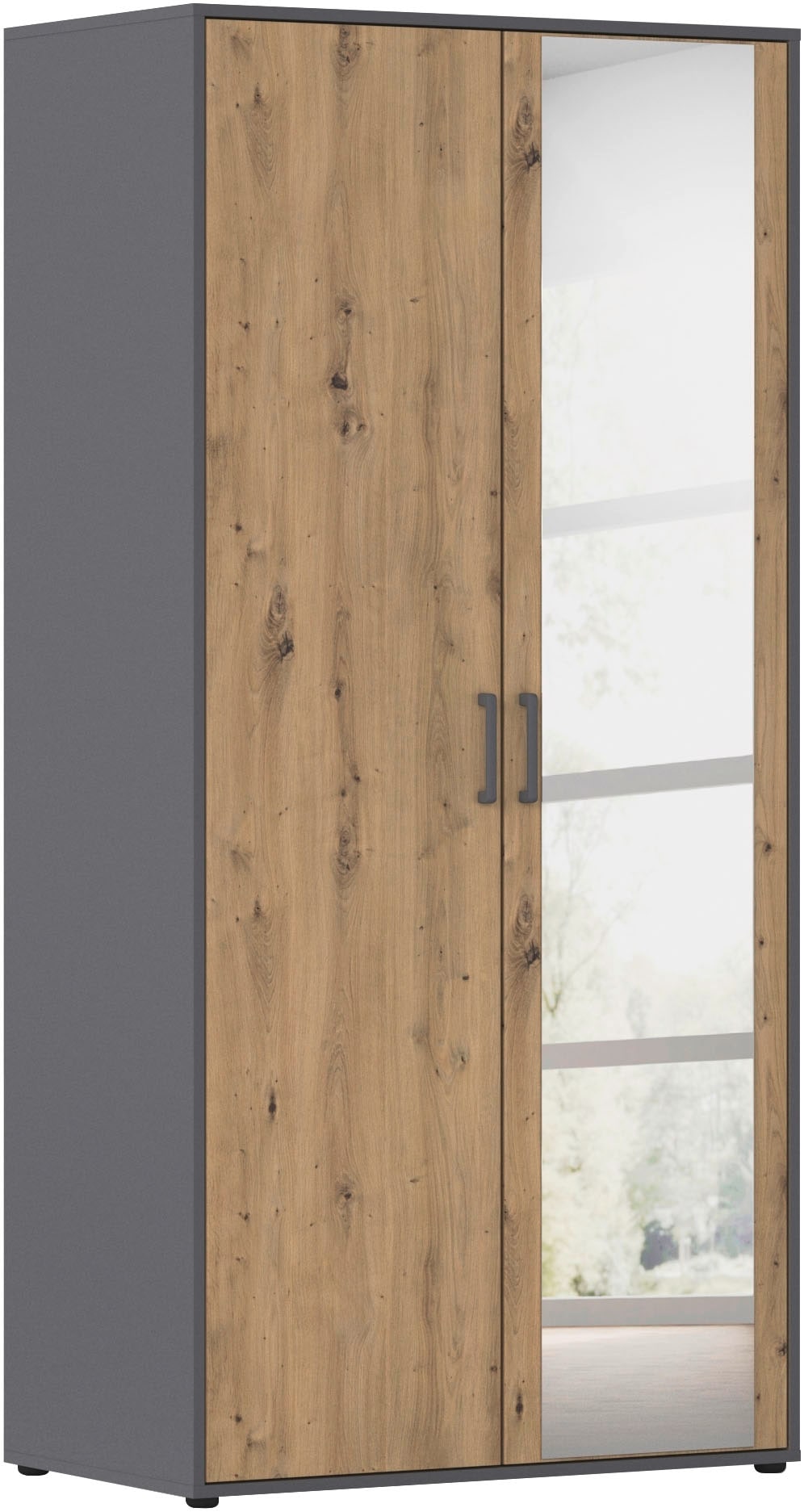 - Drehtürenschrank »Kleiderschrank Schrank Garderobe Garderobenschrank MAINZ« grifflose...rauchUrsprünglicher PreisUVP 599,00 €Rabatt- 292,01 €Aktueller Preisab 306,99 €