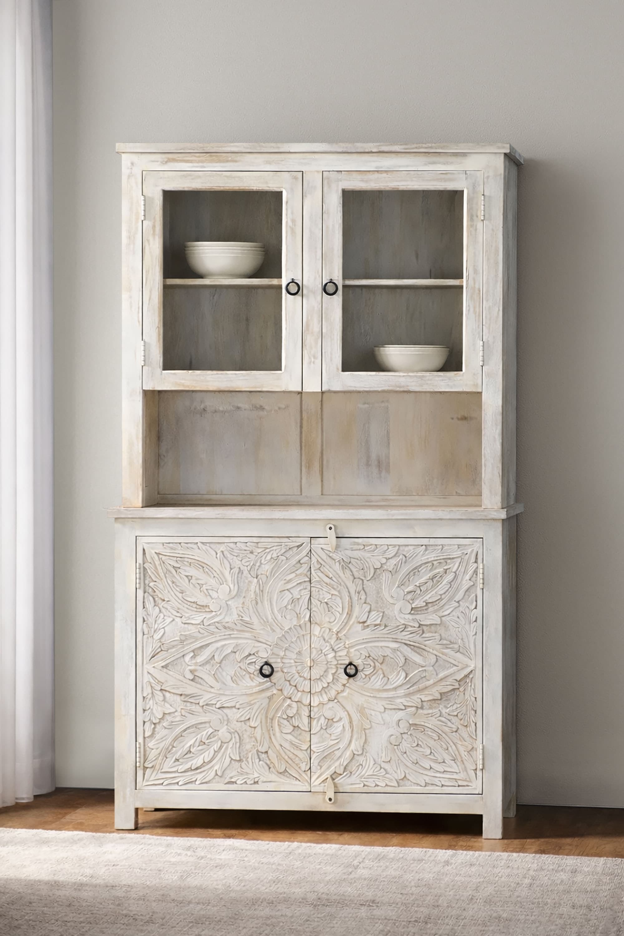 - Buffetschränke im Landhausstil verfügen über opulente Intarsien, gedrechselte Beine oder Schnitzereien. In den meisten Fällen bestehen sie aus Massivholz, das lediglich lackiert, geölt oder gewachst wurde und den Blick auf die Maserung freigibt.