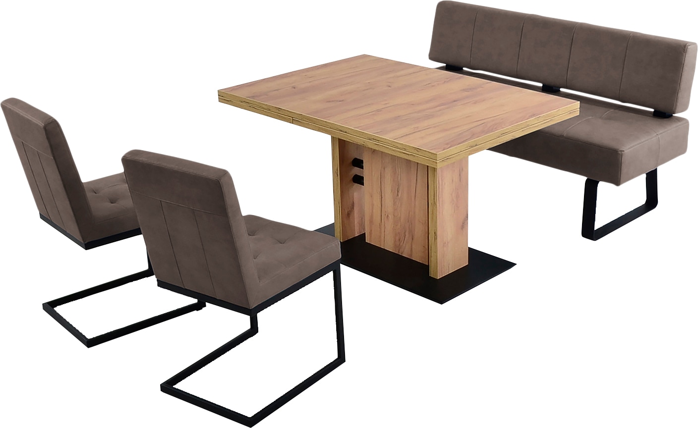- Setzen Sie auf separate Sitzbänke mit hohem Komfort, sind frei stellbare Essbänke mit Federkern-Polsterung die erste Wahl. Polsterstühle derselben Serie runden das Ensemble ab.