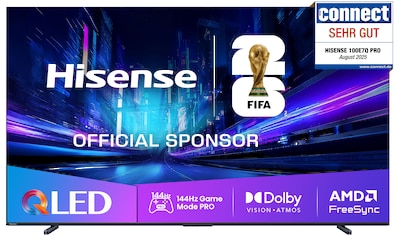 - QLED-Fernseher »100E7Q PRO« 253 cm/100 ″ Smart-TV 4K UHD QLEDHisenseUrsprünglicher PreisUVP 3.999,00 €Rabatt- 1.999,01 €Aktueller Preis1.999,99 €Grundpreis1.999,99 €pro1 Stk
