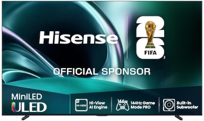 - QLED Mini LED-Fernseher »100U7Q« 253 cm/100 ″ Smart-TV 4K UHD Mini LEDHisenseUrsprünglicher PreisUVP 4.199,00 €Rabatt- 1.699,01 €Aktueller Preis2.499,99 €Grundpreis2.499,99 €pro1 Stk