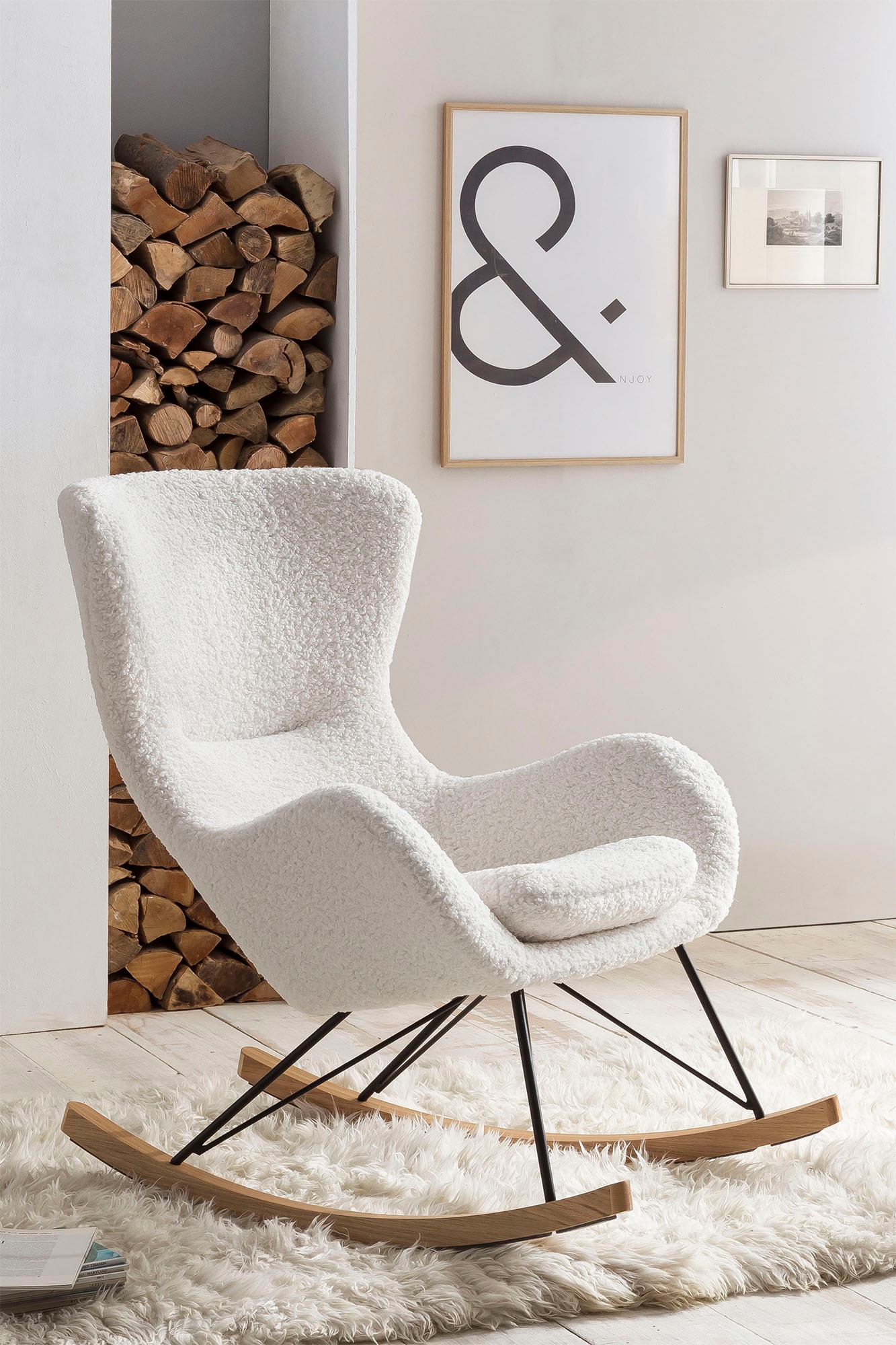 SalesFever Schaukelsessel »Entspannender Schaukelstuhl« In charmantem Teddyfell-Design