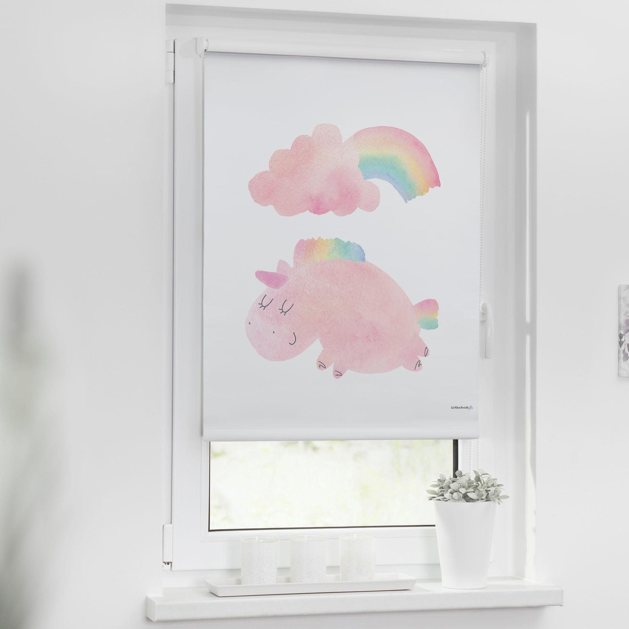 Lüttenhütt Seitenzugrollo »EINHORN« verdunkelnd ohne Bohren Kinderrollo im Fixmaß
