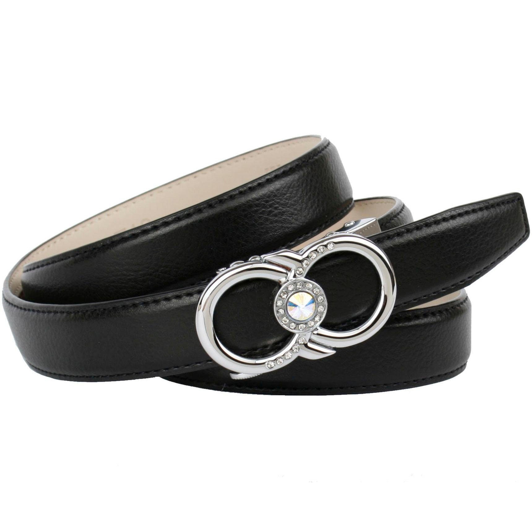 Anthoni Crown Ledergürtel Femininer Ledergürtel, Schließe mit Glitzersteinen