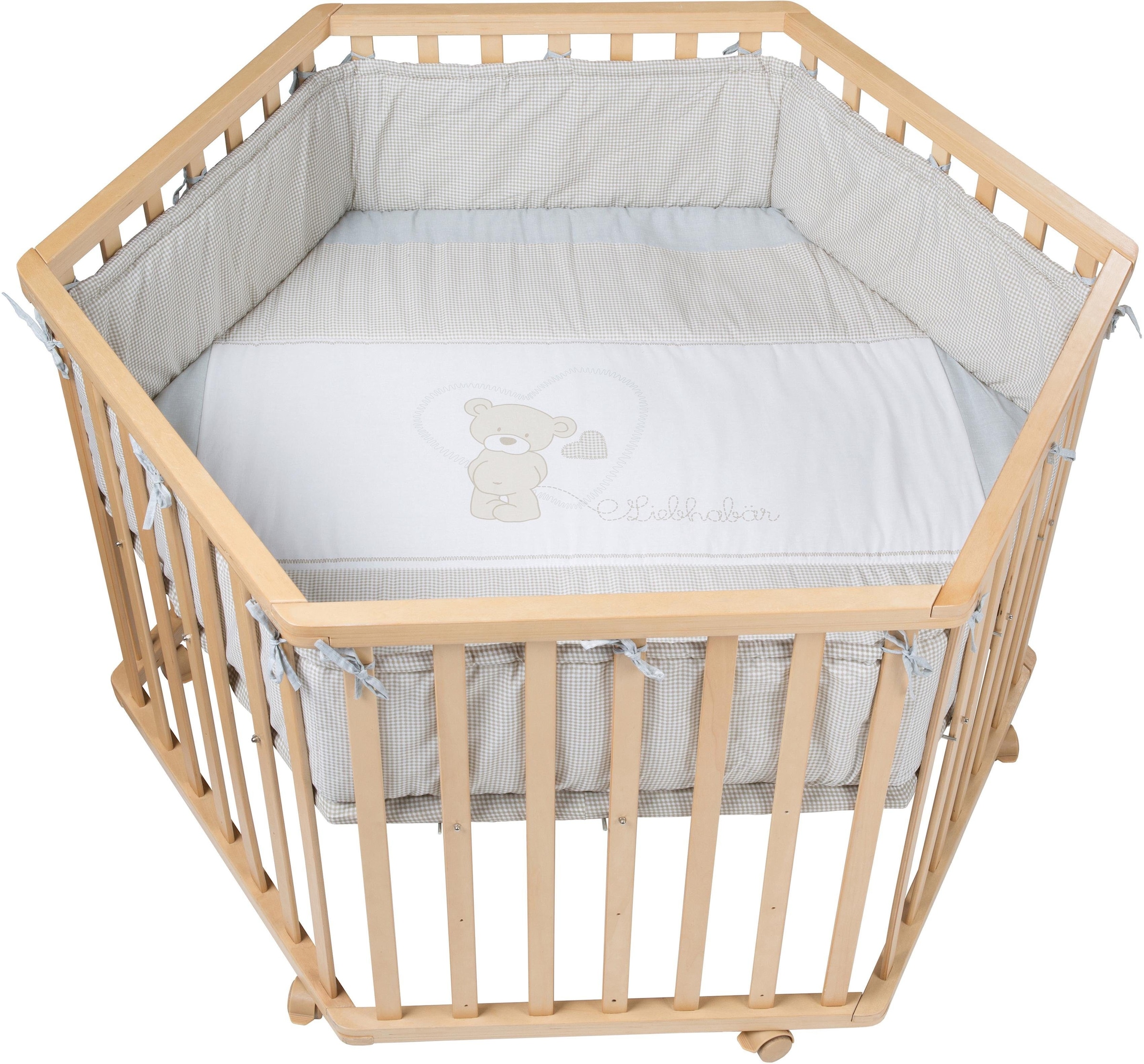 - Laufstall mit gepolsterte Stoffeinlage und Nestchen »Liebhabär, natur, 6-eckig«