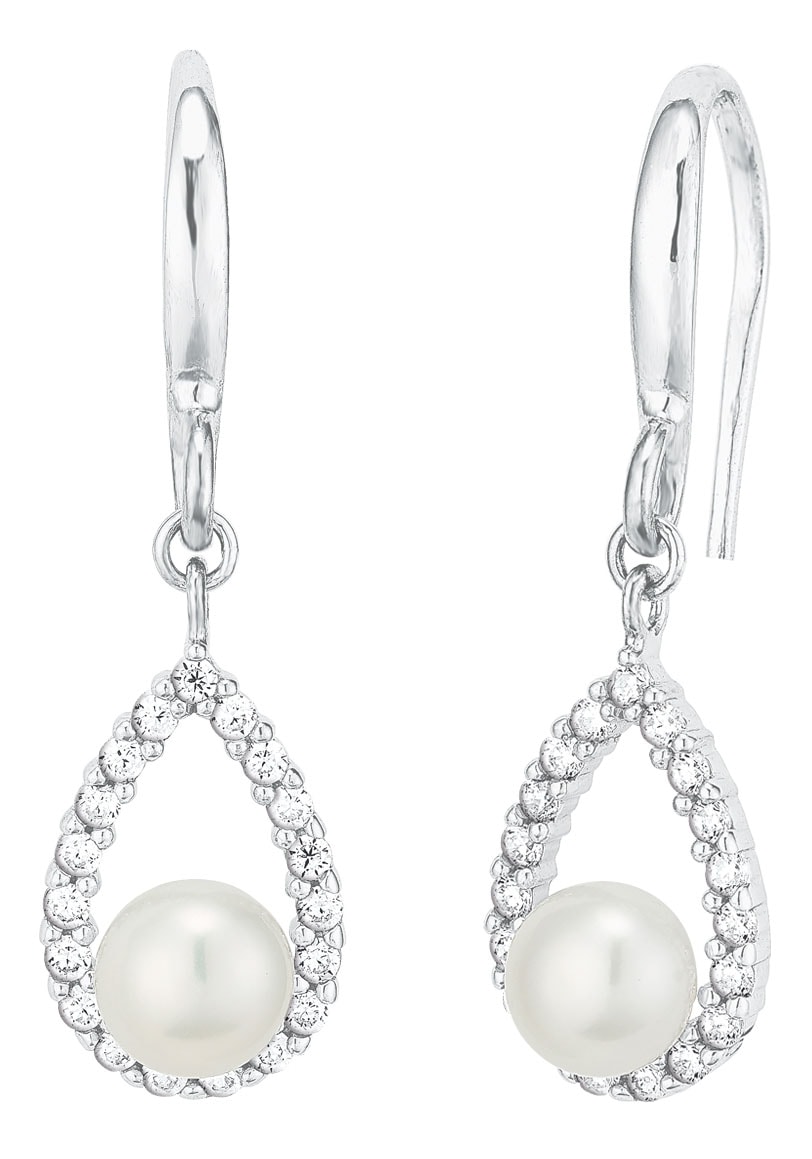 Amor Paar Ohrhaken »Tropfen, 2026194« mit Zirkonia (synth.) - mit Süßwasserzuchtperle