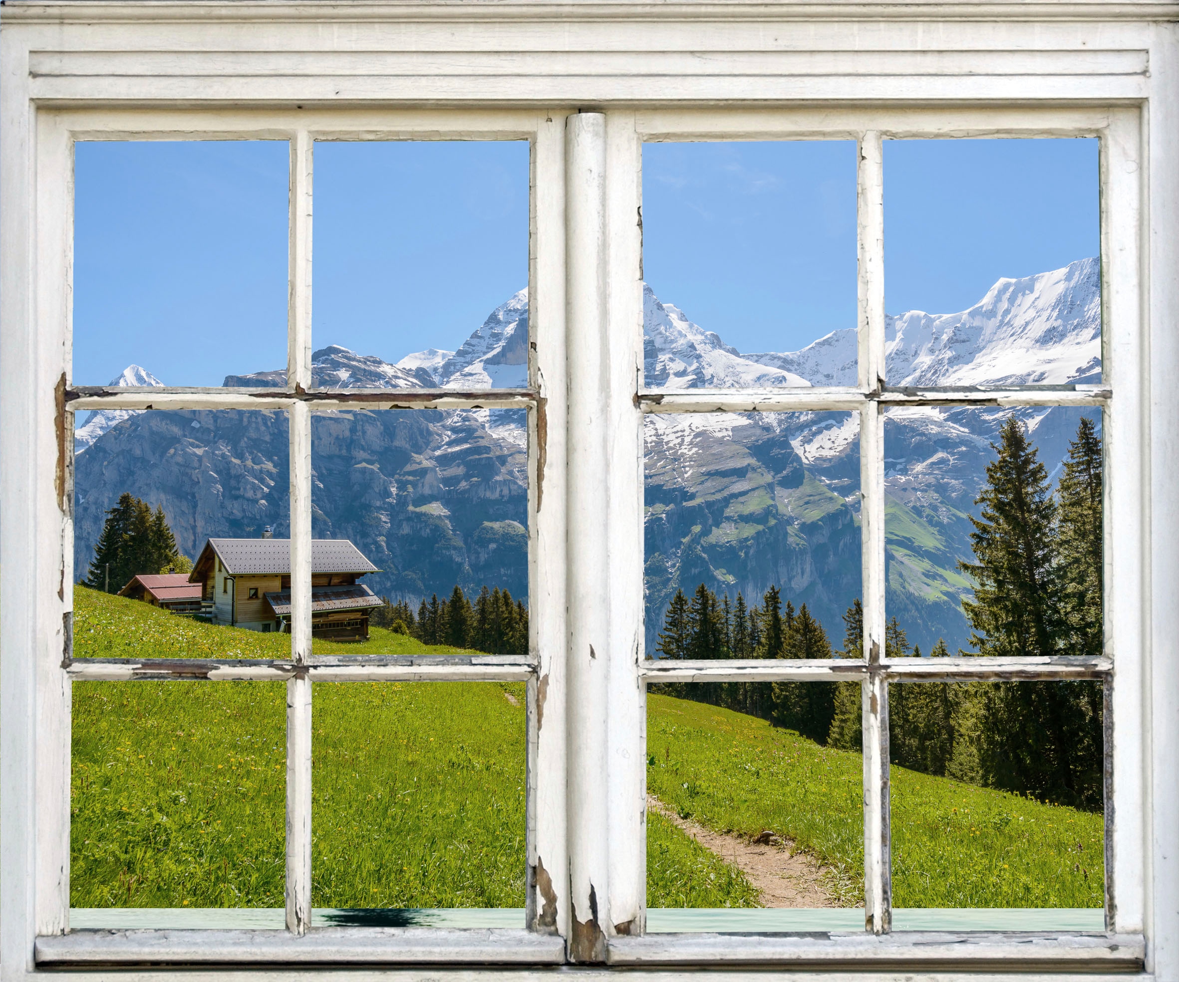 queence Wandsticker »Hütte in den Bergen« Wandsticker, Wandbild, selbstklebend, 3D, Fenster