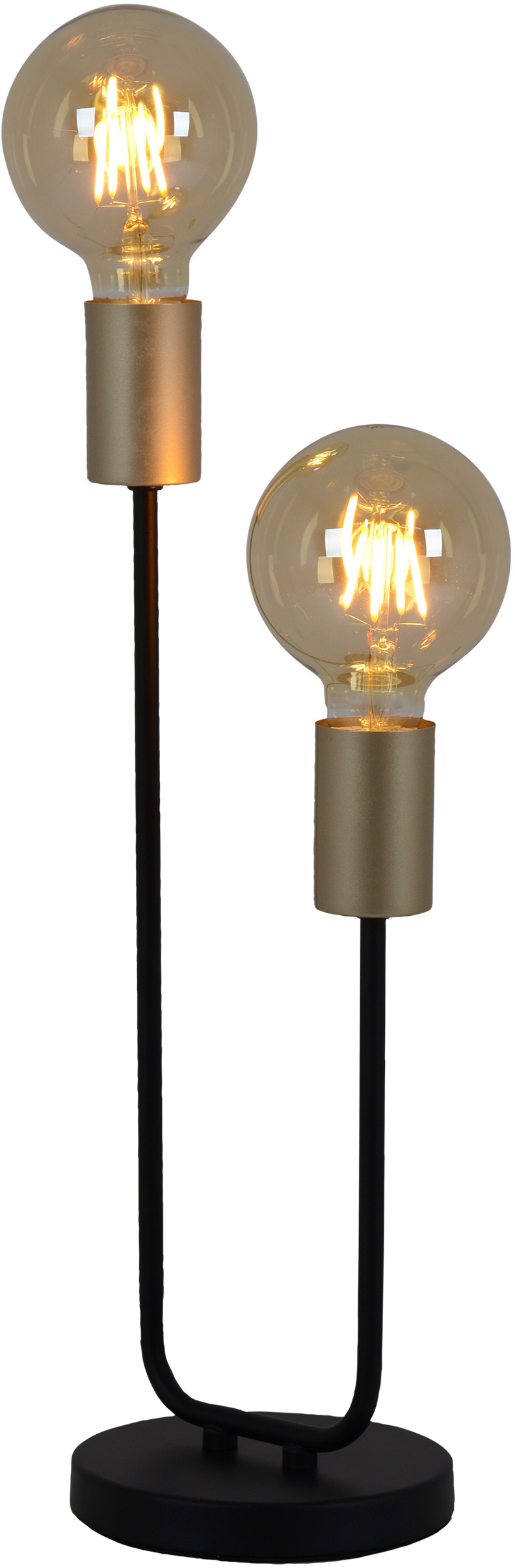 - Die Tischeluchte in matt schwarz/gold fügt sich durch ihr schlichtes Design in jeden Wohnraum mit ein.