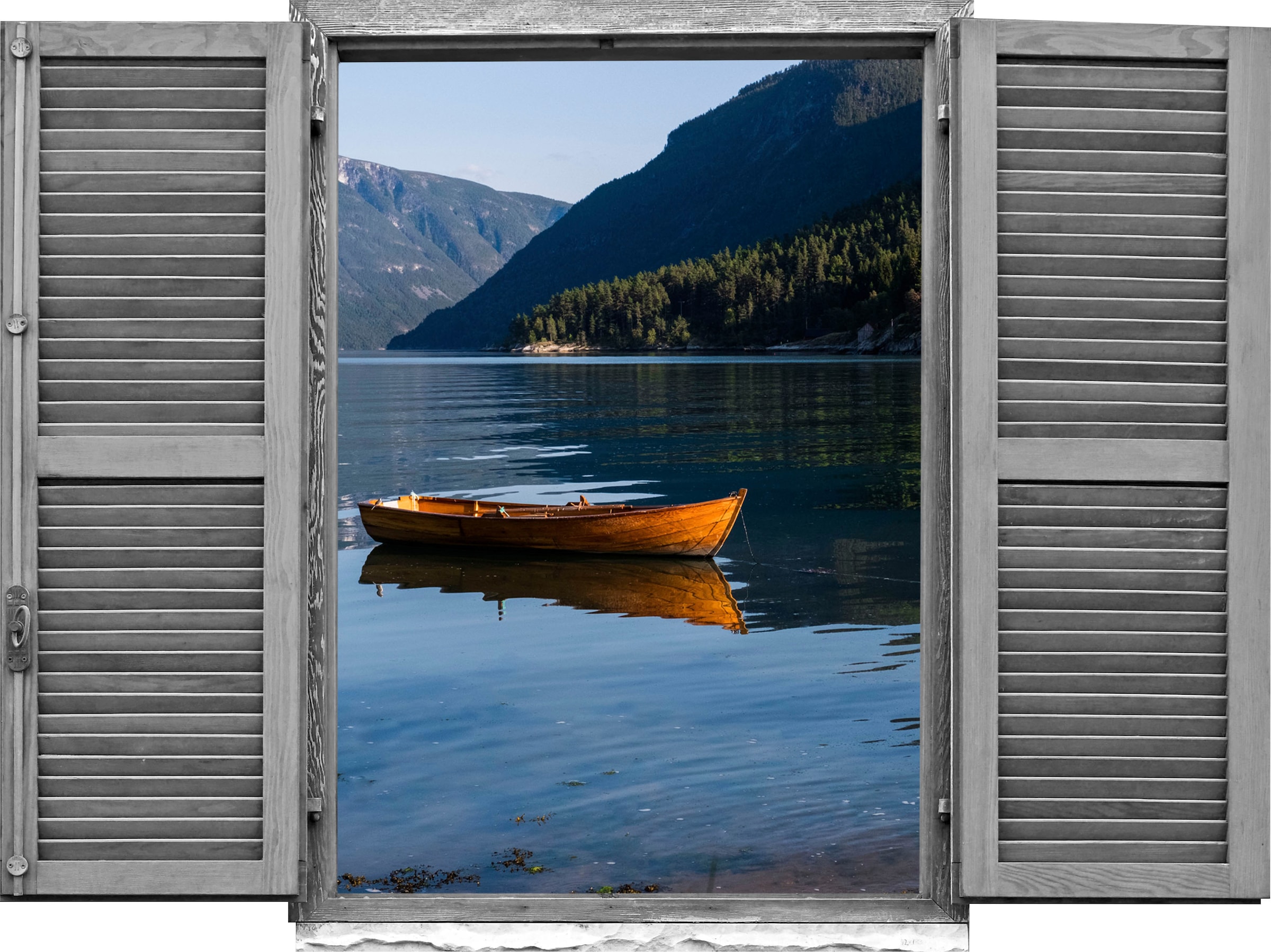 queence Wandtattoo »See mit Boot« Wandsticker, Wandbild, selbstklebend, 3D, Fenster