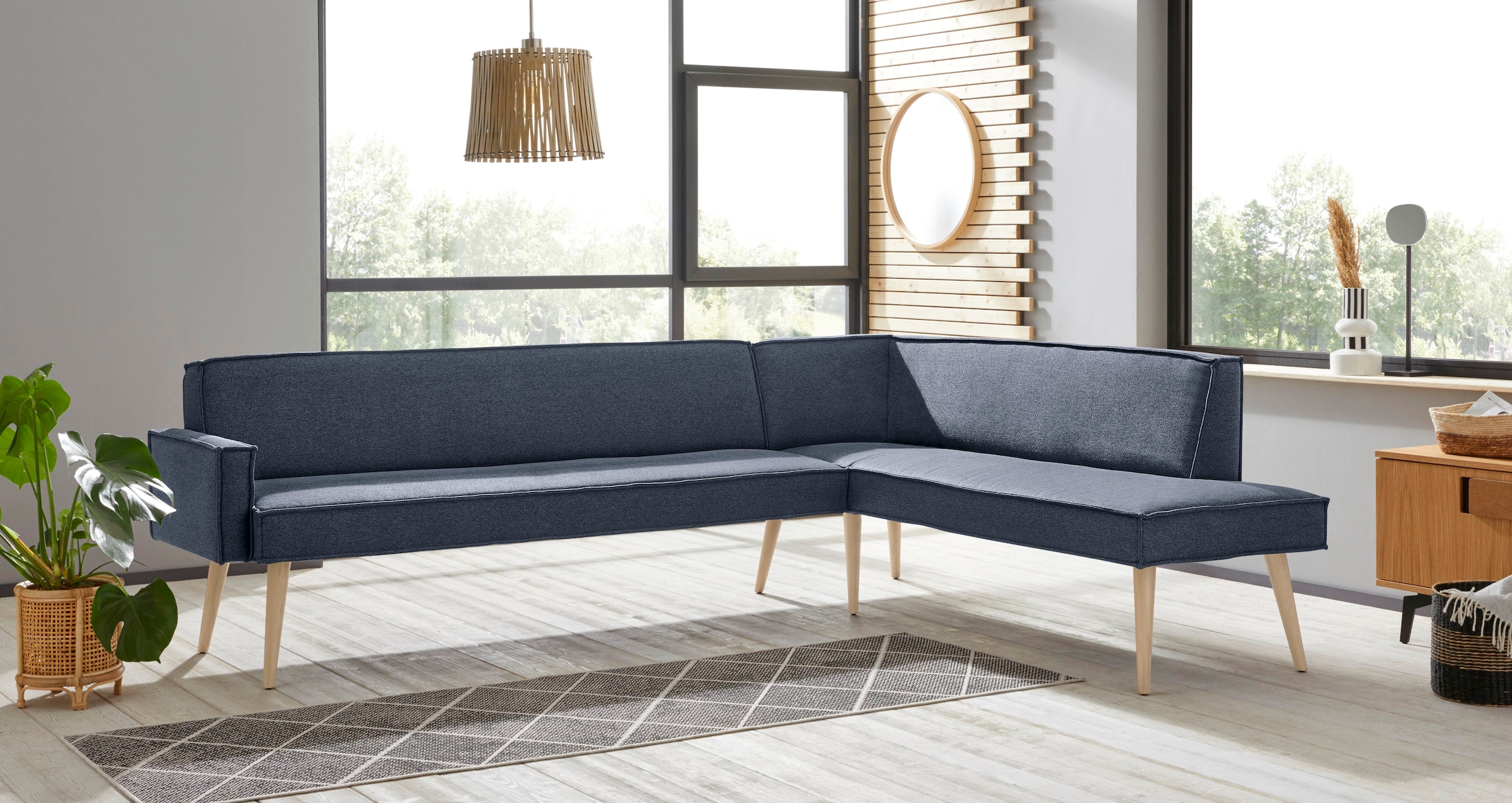 exxpo - sofa fashion Eckbank »Lungo, moderne Kedernaht, bequem und elegant, hoher Holzfuß« hochwertige Detailverarbeitung, frei im Raum stellbar