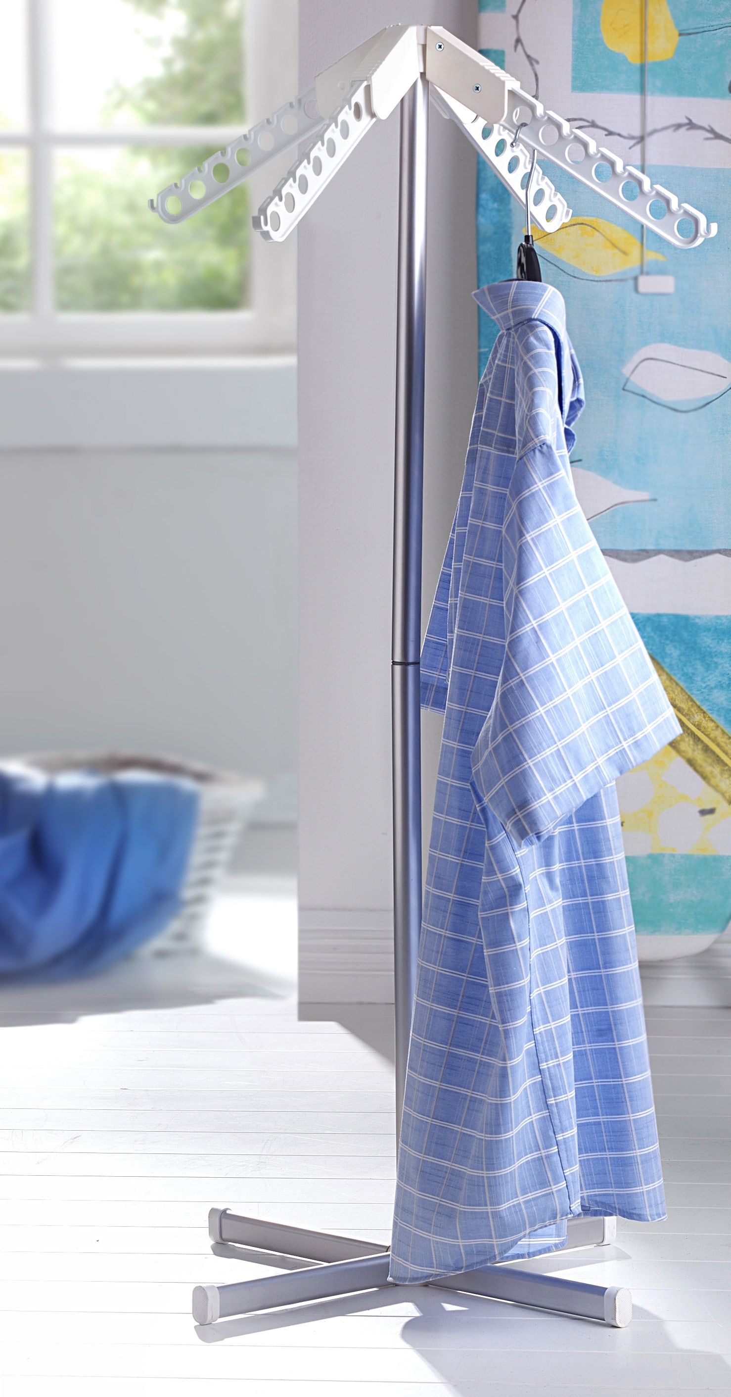 - Mit 4 klappbaren Trockenarmen für je 7 Kleiderbügel