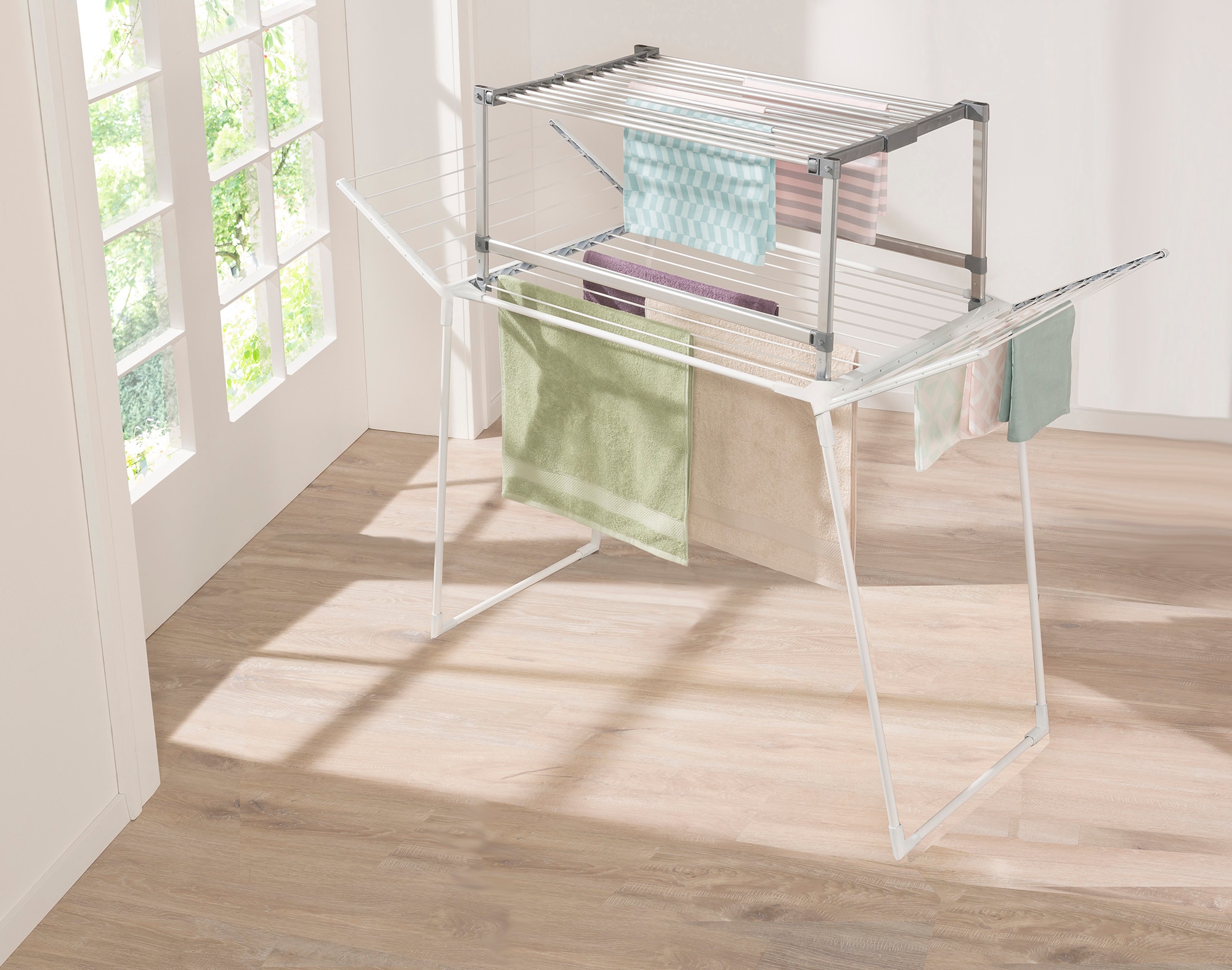 - Aufsatz für handelsübliche Flügeltrockner und Standtrockner in Einem