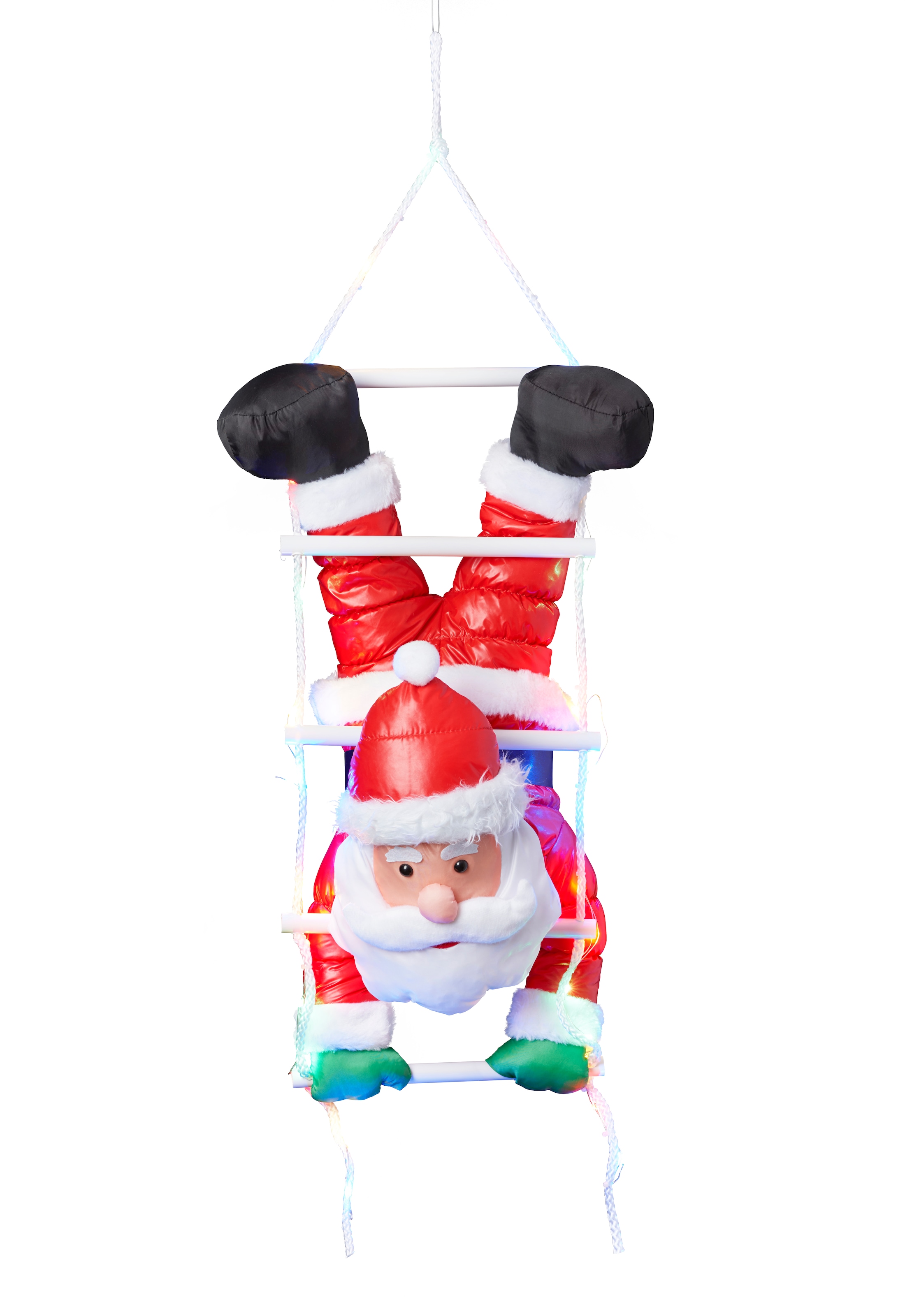 Ho ho ho - hier kommt der Weihnachtsmann mit einem Sack voller Geschenke an. Kopfüber klettert der Weihnachtsmann die leuchtende Leiter herunter, um den Kindern zum Weihnachtsfest rechtzeitig die Geschenke zu überbringen. Dank des Batteriefaches kannst du den Weihnachtsmann nach belieben aufhängen. Über das An- und Ausschalten musst du dir durch die praktische Timerfunktion keine Gedanken machen. Die 30 bunten LEDs erstrahlen im Dunklen und bringen deinen Garten zum Strahlen. Batterien sind im Lieferumfang nicht enthalten (3x AA Batterien sind erforderlich).
