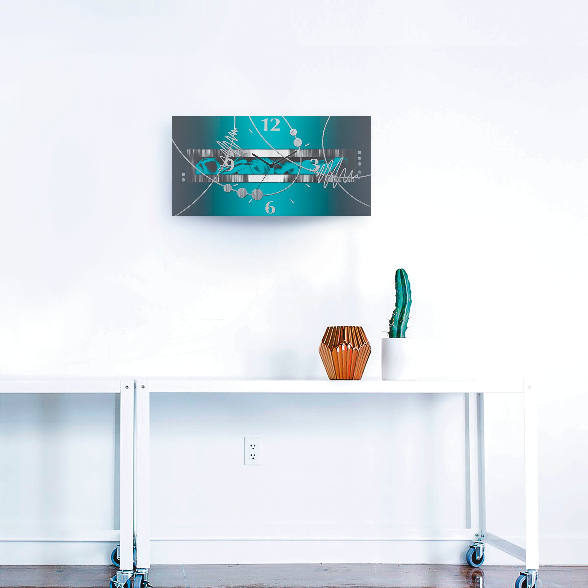 Artland Wanduhr »Silber abstrakt auf petrol« 3D Optik gebogen, mit Quarz- oder Funkuhrwerk, versch. Größen