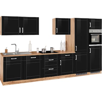 Küche: schwarz + Korpus: wotaneichefarben + Arbeitsplatte: wotaneichefarben
