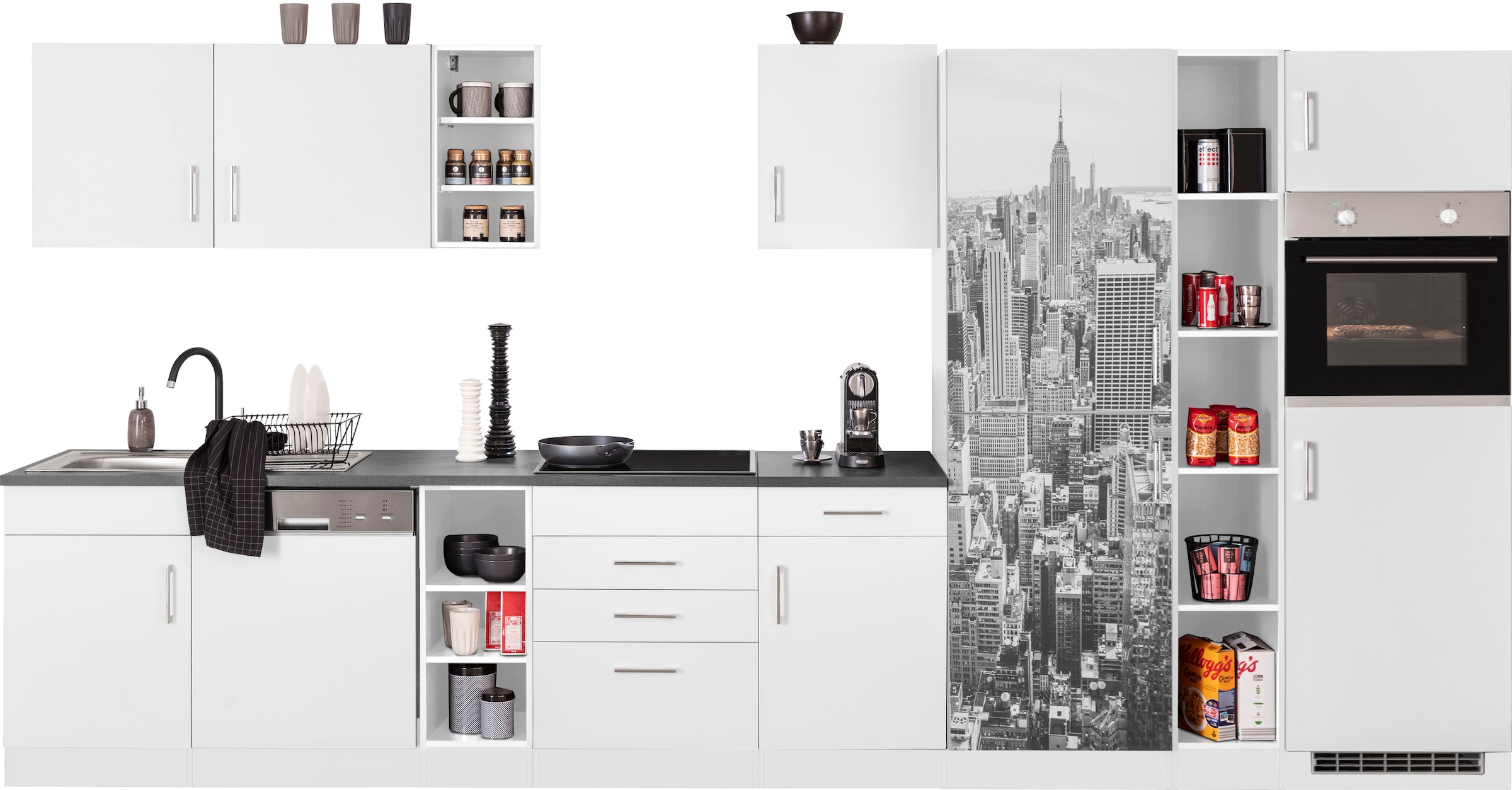 - Beliebig um weitere Schränke erweiterbar, z. B. auch über Eck