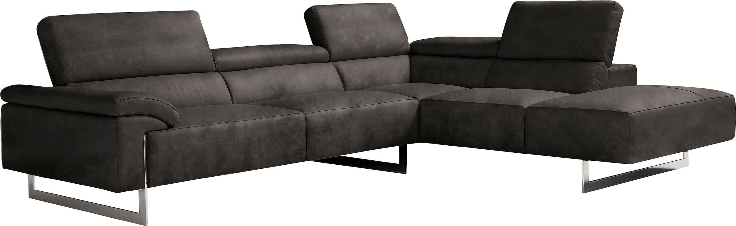 Egoitaliano Ecksofa »Malika, elegant und bequem, Designsofa, L-Form« mit Ottomane, inkl. Kopfteilverstellung und chromfarbenen Metallfüßen