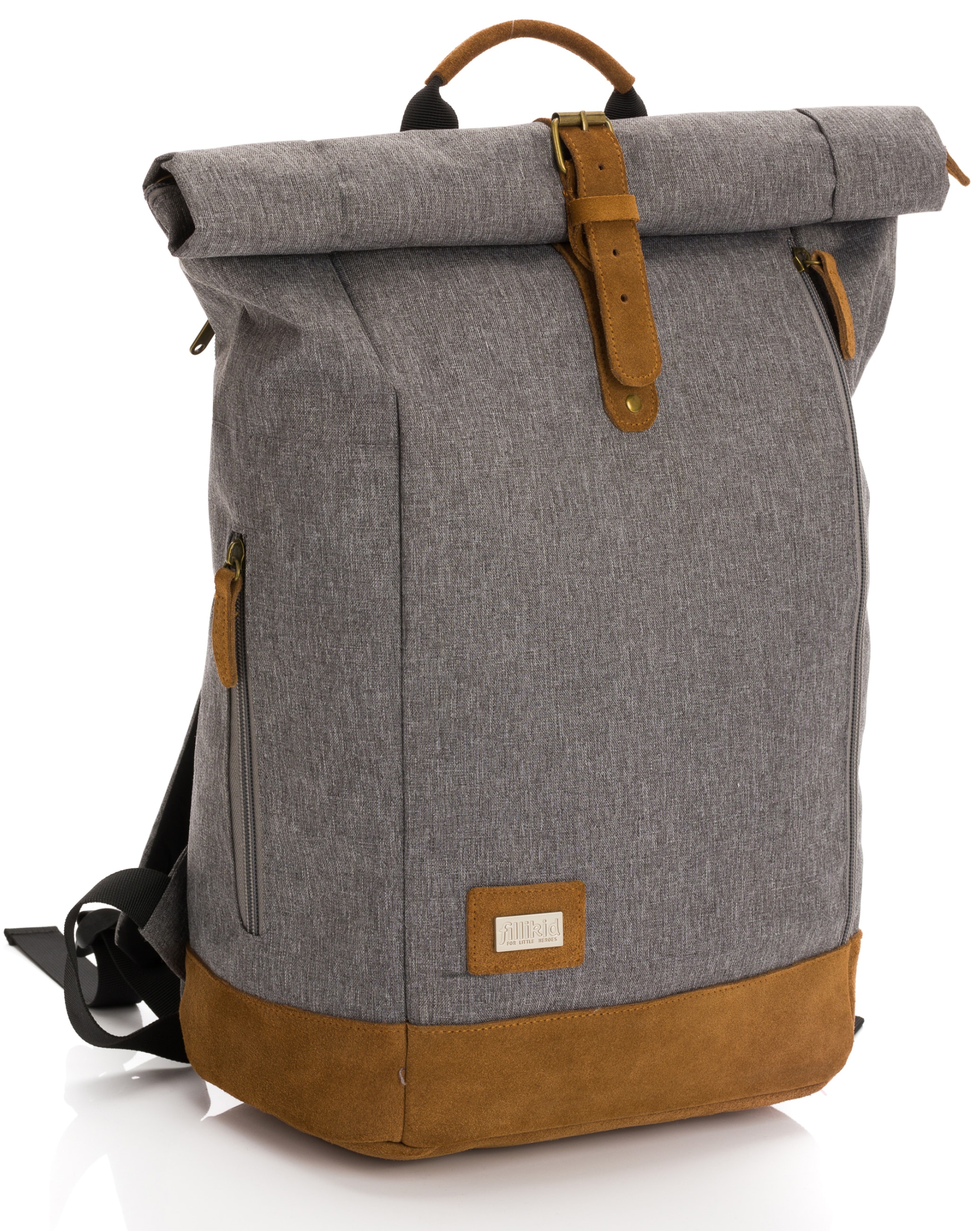 Fillikid Wickelrucksack »Rolltop Berlin, grau melange« Reflektoren inkl. Wickeltunterlage