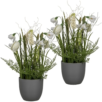 - 3er Set Deko-Gras-Büsche im weißen Topf