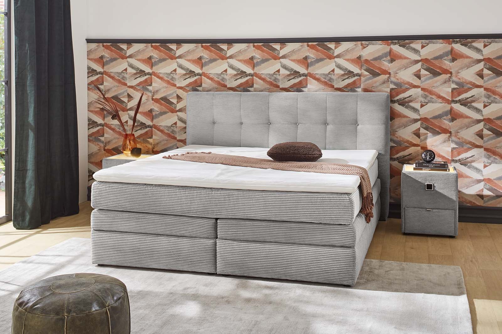 - Erhältlich in trendiger Samtoptik oder Cord: Stilvolle Designs, die jedem Schlafzimmer einen modernen und eleganten Akzent verleihen.