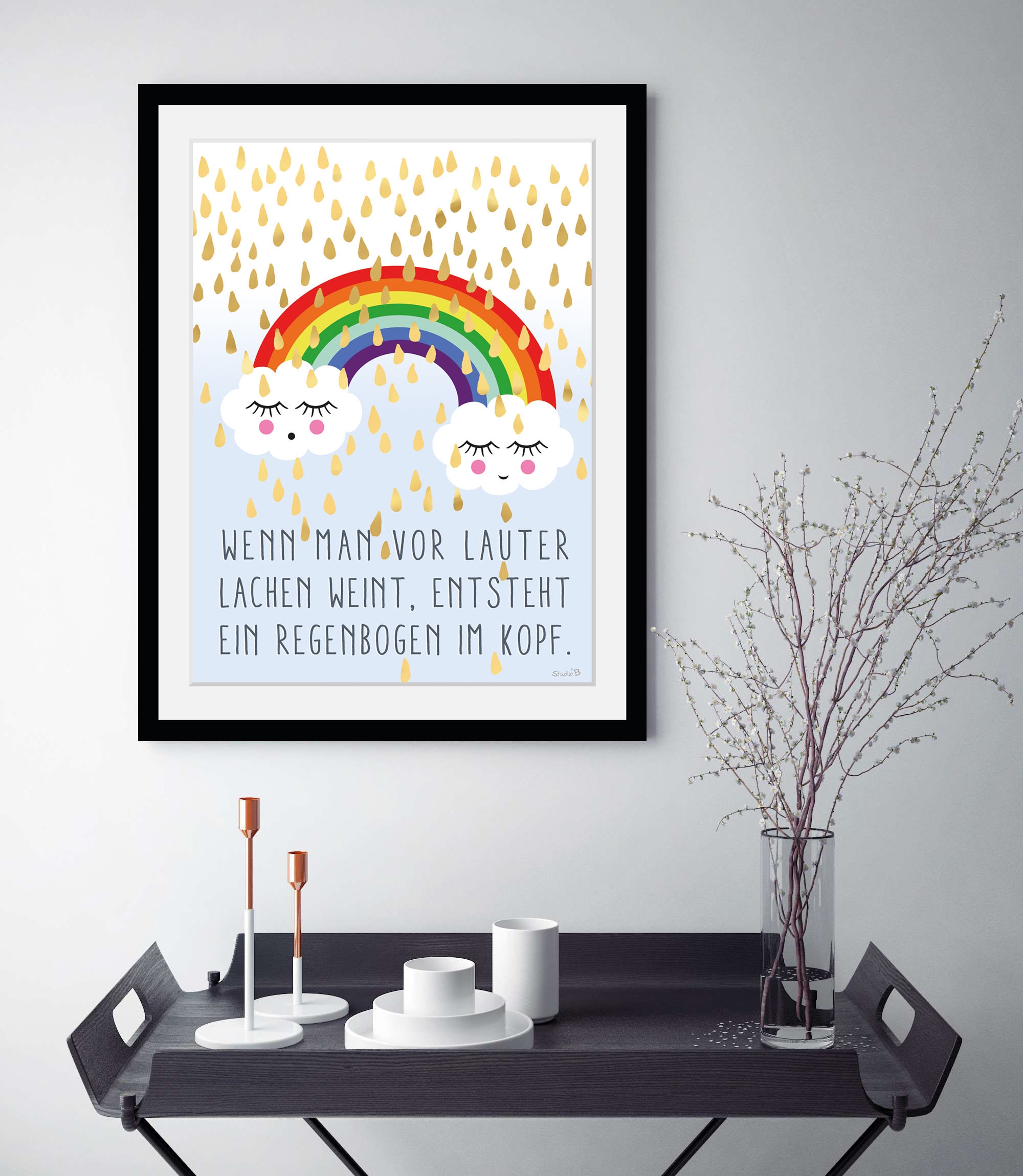 queence Bild »Regenbogen im Kopf« Gesicht | Himmel | Motivationsbilder | Regenbogen | Sprüche & Texte | Wolken 1 Stk. tlg. HD Premium Poster-Druck inkl. Holzrahmen