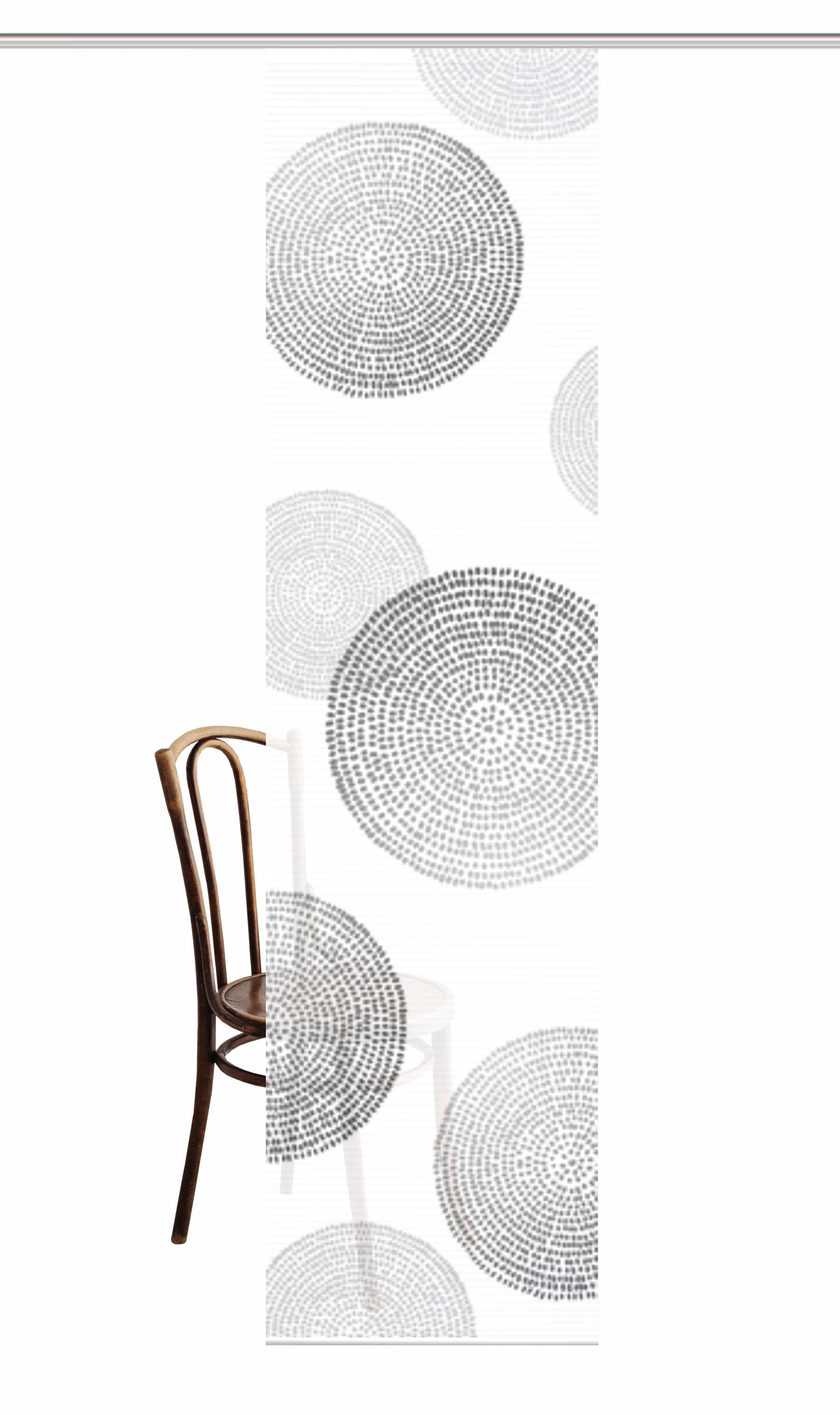 Hinweis Dekoration | Eine Schiebegardine ist eine schmale, glatt hängende Stoffbahn, die sich sowohl als Sichtschutz als auch zur Raumteilung eignet. Durch die Schiebetechnik sind Schiebegardinen sehr flexibel einsetzbar. |