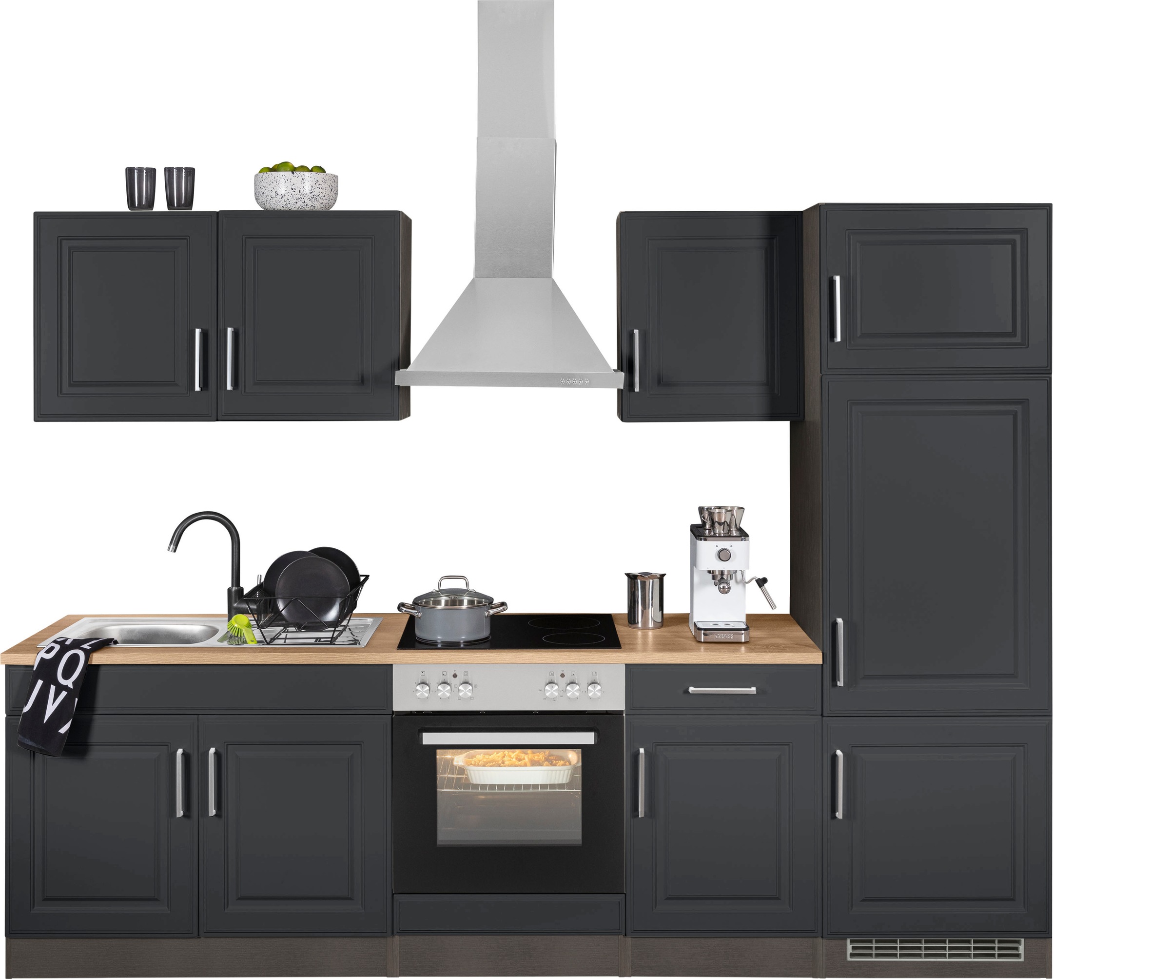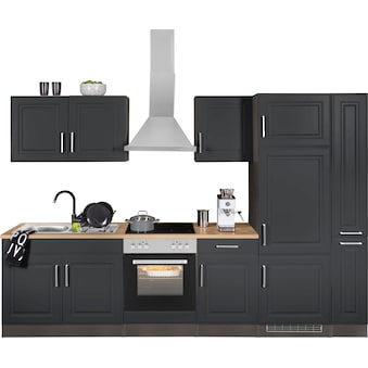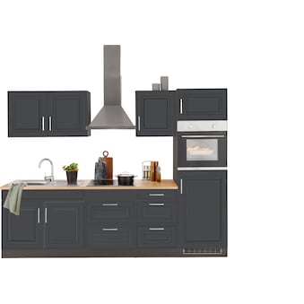 KOCHSTATION Küchenzeile »KS-Stockholm – Küche mit hochwertiger und detailreicher Landhausfront« Breite 280 cm, wahlweise mit E-Geräten,mit MDF-Fronten