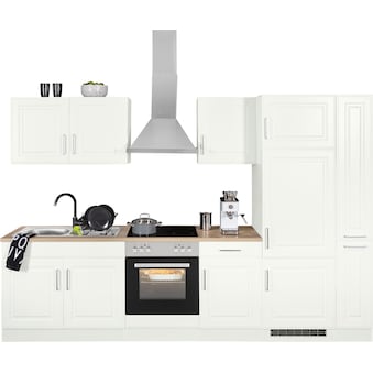 KOCHSTATION Küchenzeile »KS-Stockholm – Küche mit hochwertiger und detailreicher Landhausfront« Breite 280 cm, wahlweise mit E-Geräten,mit MDF-Fronten
