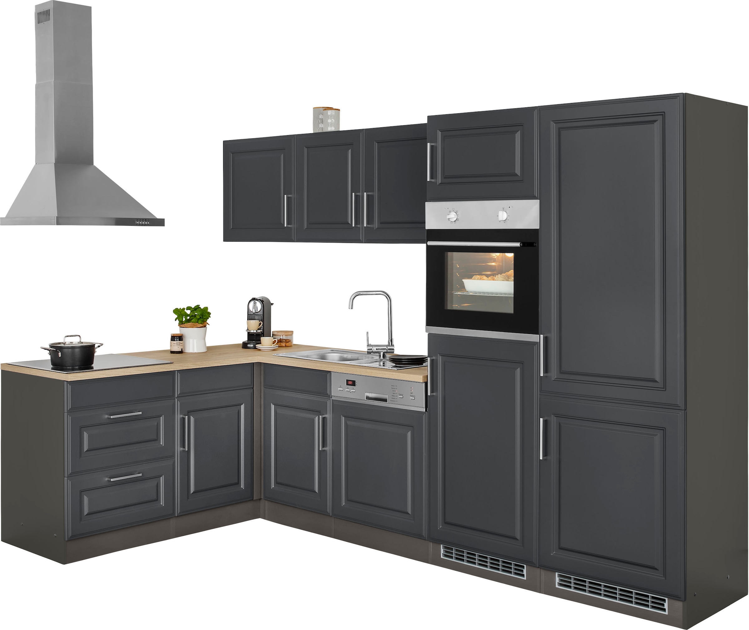 KOCHSTATION Winkelküche »KS-Stockholm« Stellbreite 290/170 cm, mit hochwertigen MDF Fronten im Landhaus-Stil
