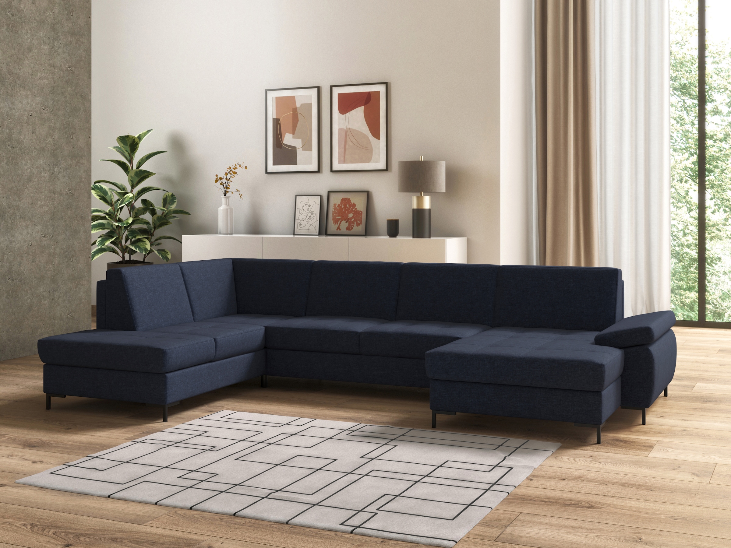 DOMO collection Wohnlandschaft »Capelo, komfortabel, klare Linien zeichnen dieses Design aus, U-Form« mit Armteilverstellung, wahlweise mit Bettfunktion, Federkern