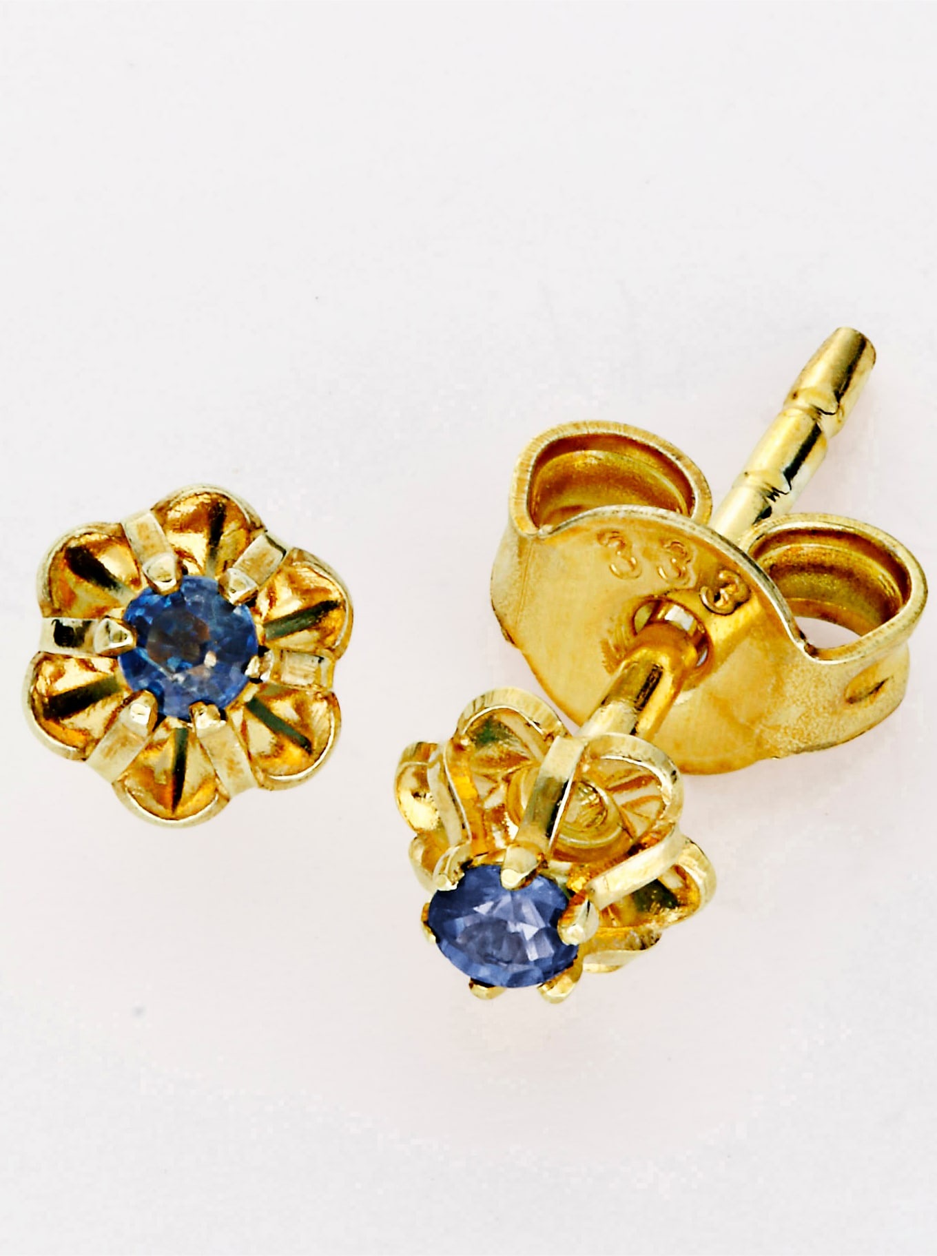 Bezaubernder Ohrstecker wahlweise mit Rubin, Saphir und Smaragd. Aus 375er Gelbgold mit Poussette.